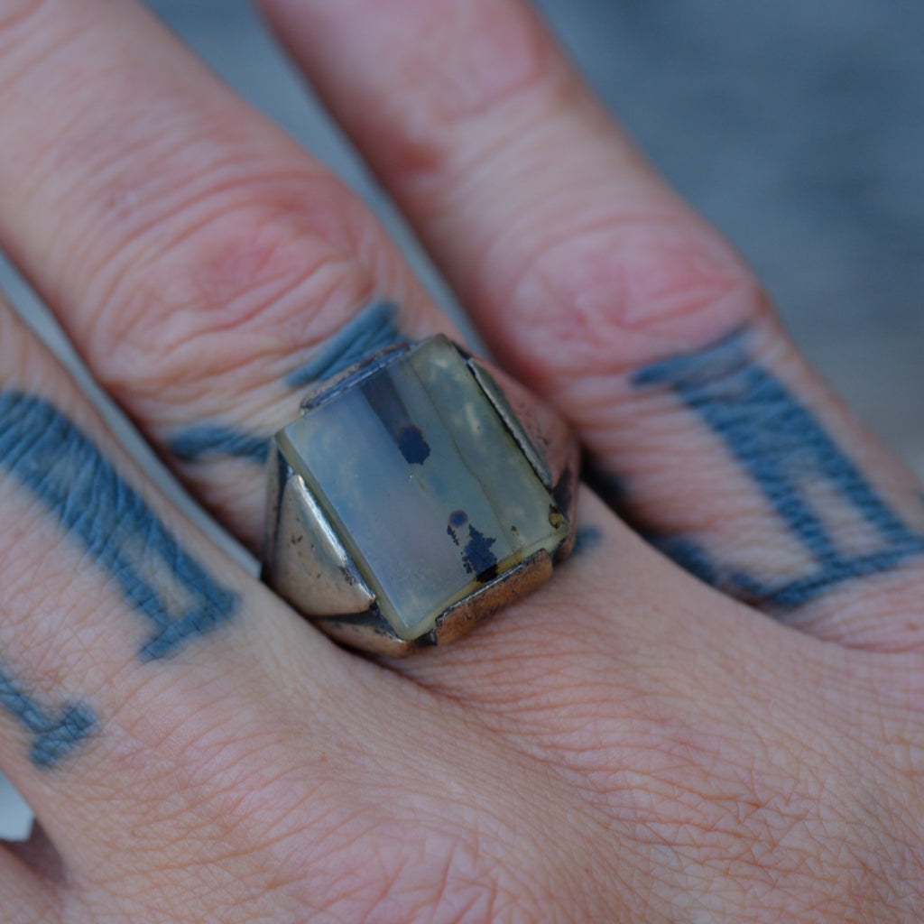 Vintage Sterling Agate Signet Ring 8.75