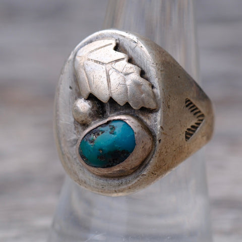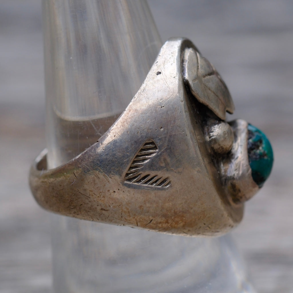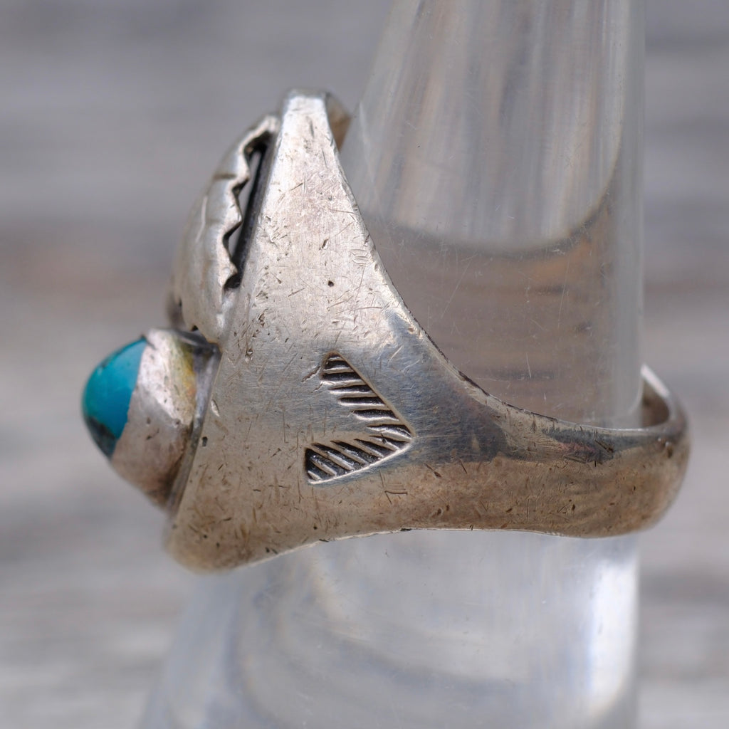 Vintage Sterling Turquoise Stamped Band Ring 8.25