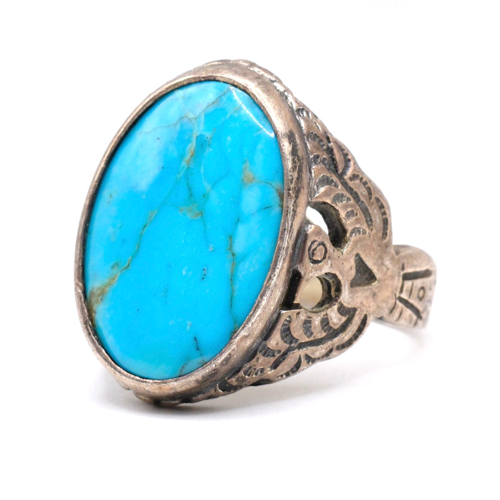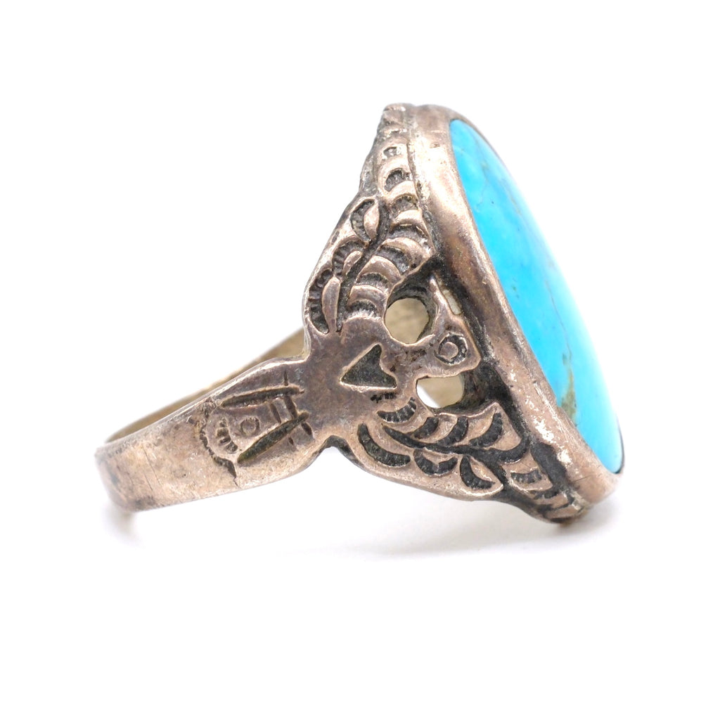 Vintage Sterling Turquoise Thunderbird Ring 11.5