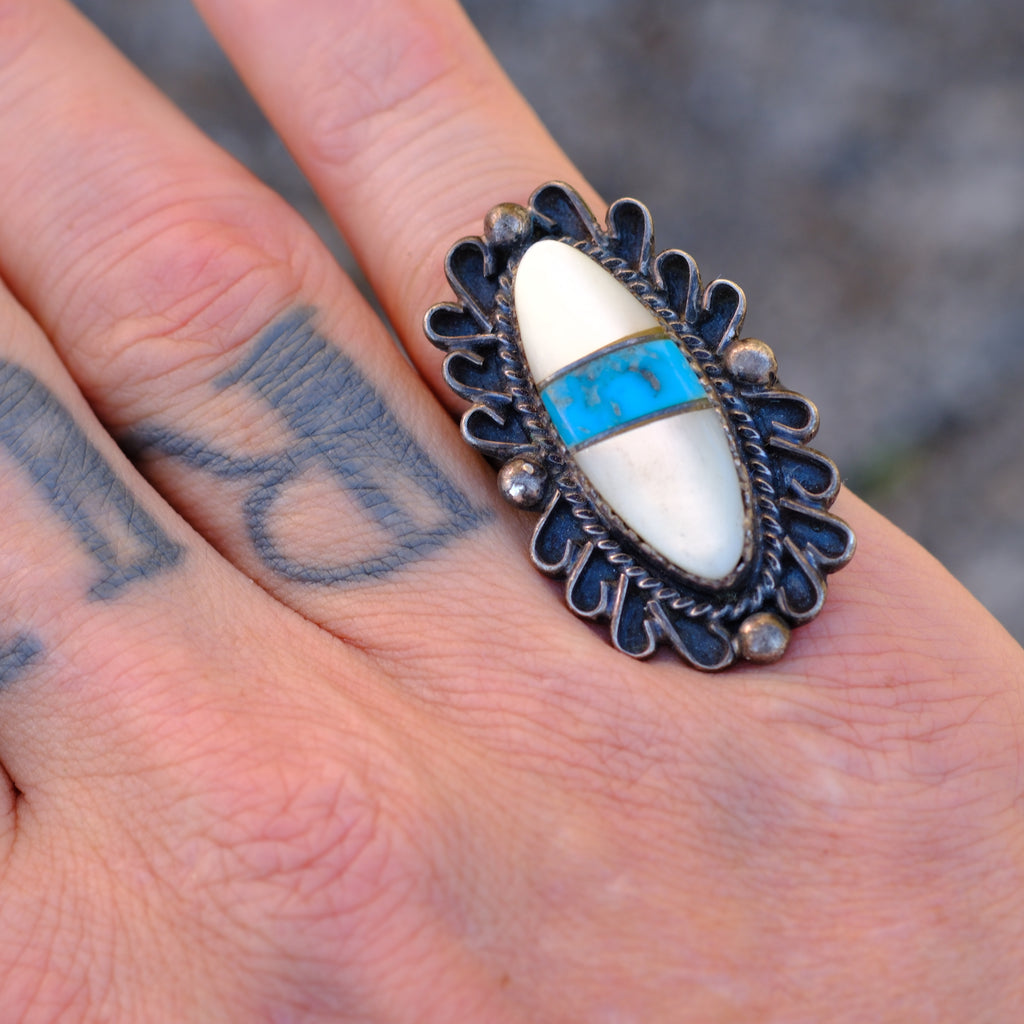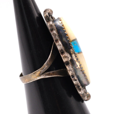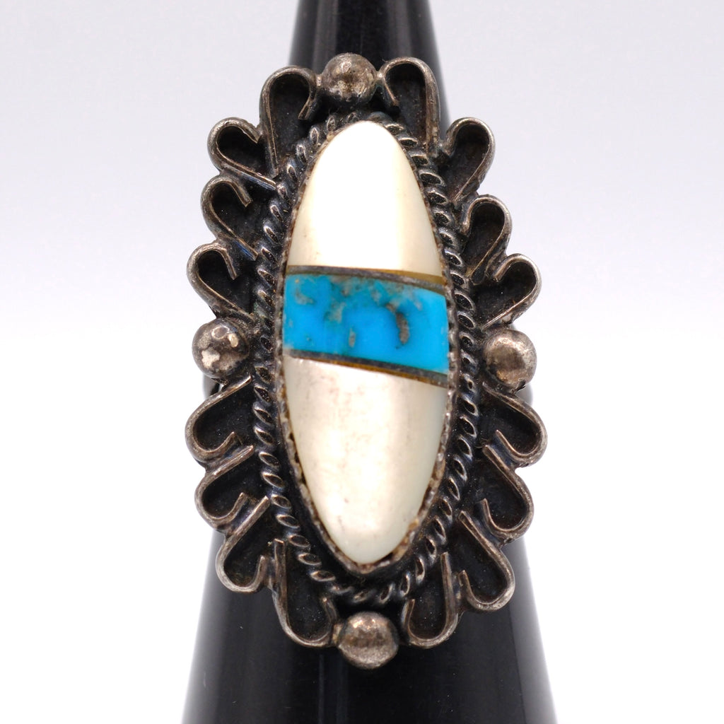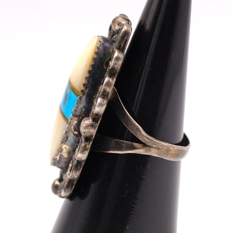 Vintage Sterling Turquoise and Mother Of Pearl Inlay Ring 7