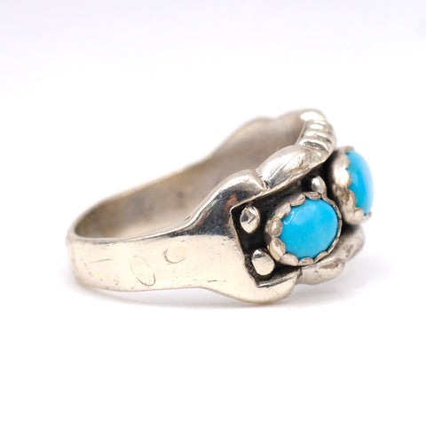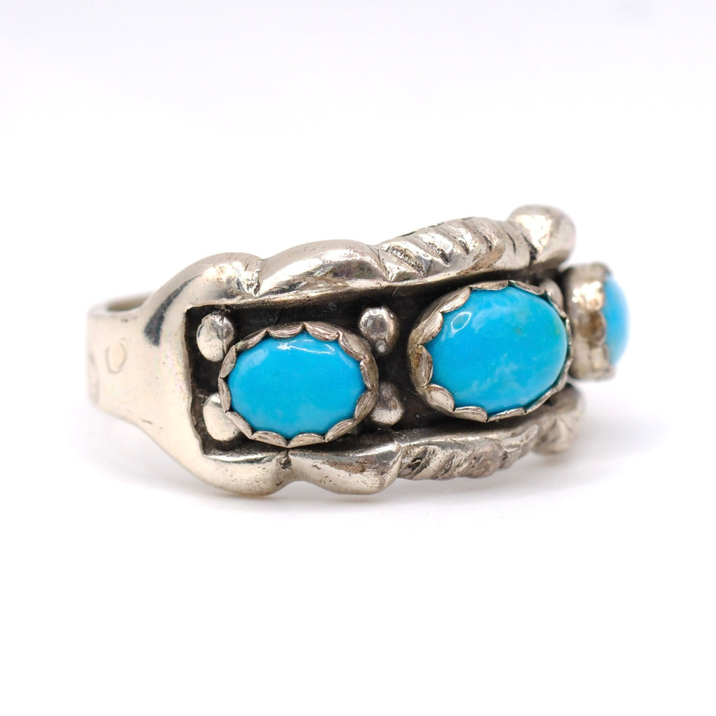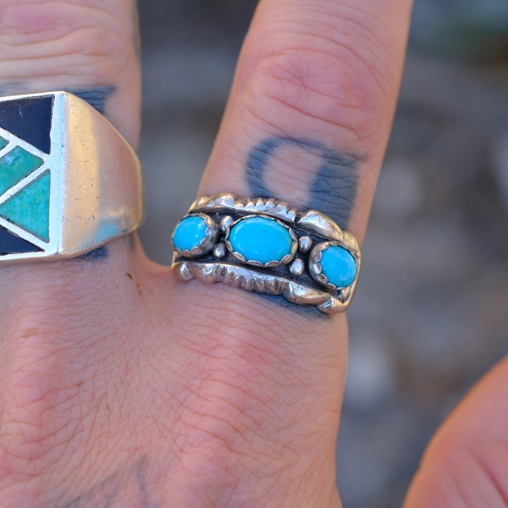Vintage Sterling 3-Stone Turquoise Ring 10.5