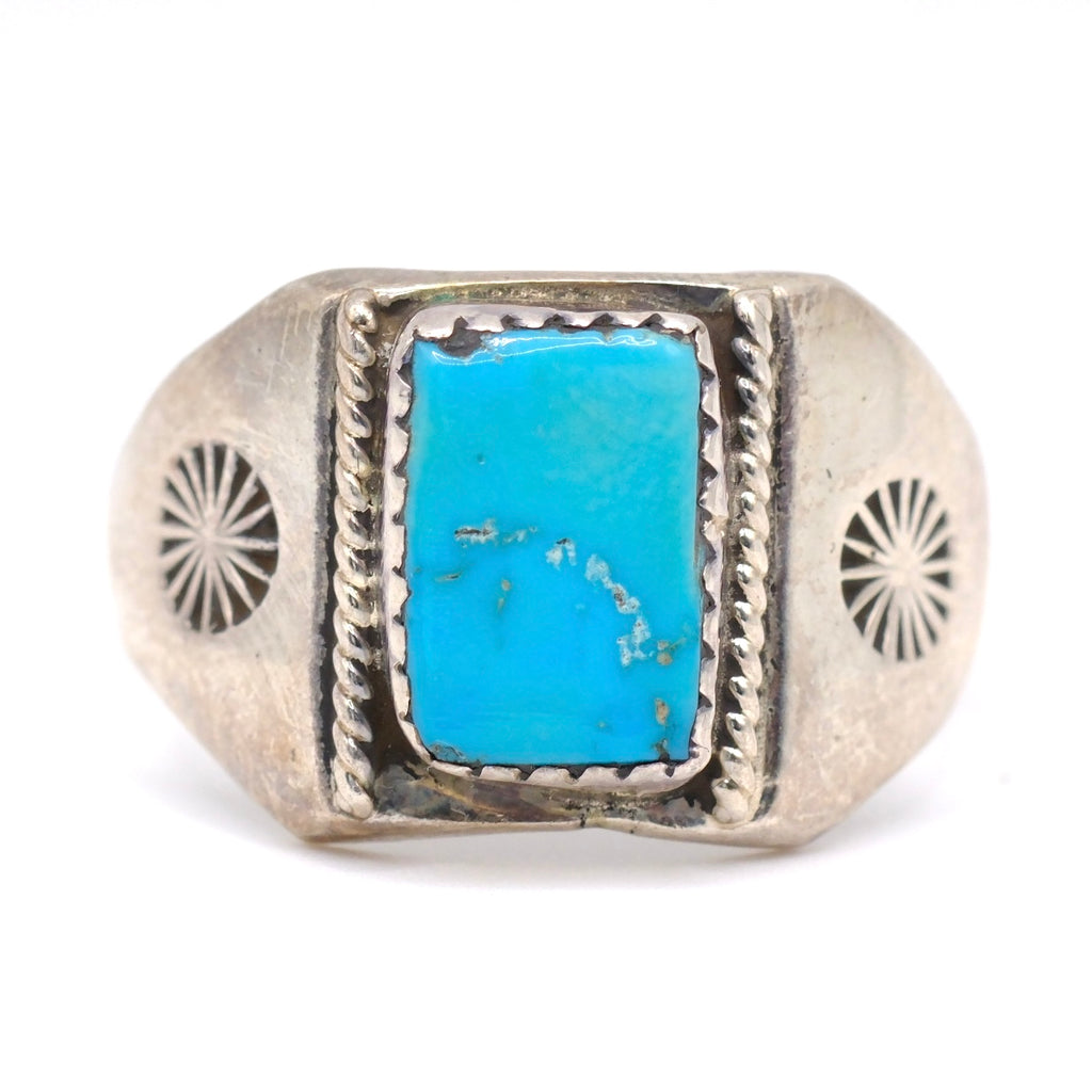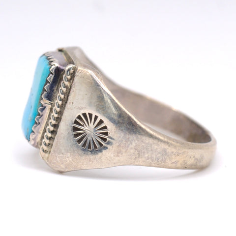Vintage Sterling Turquoise Stamped Band Ring 11.5