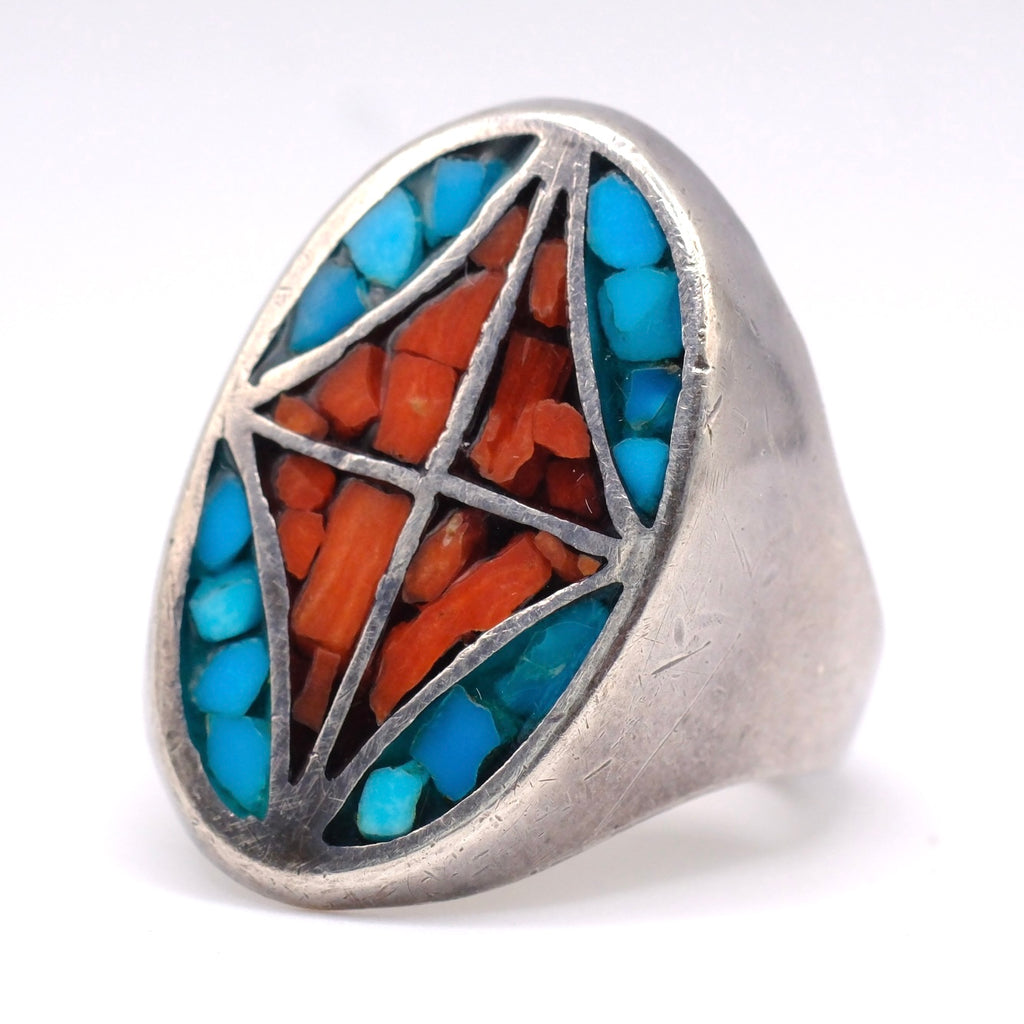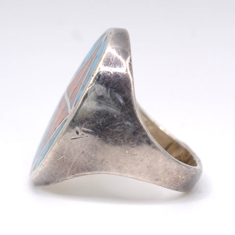 Vintage Sterling Turquoise and Coral Inlay Ring