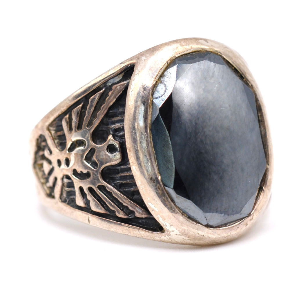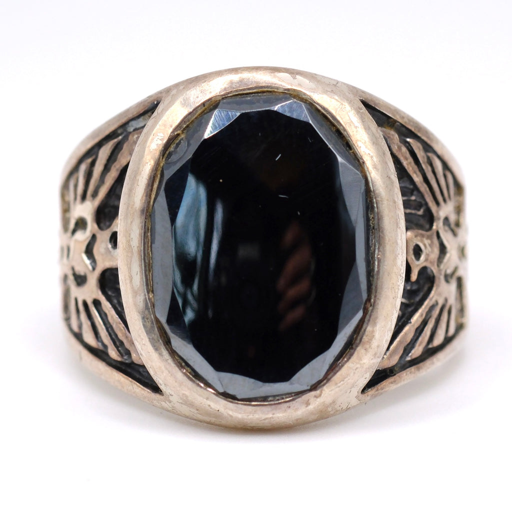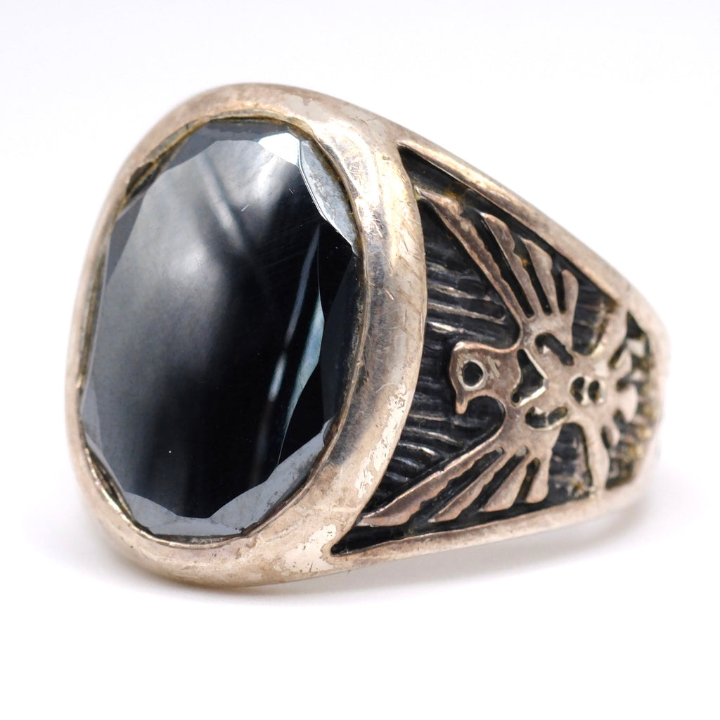 Vintage Sterling Hematite Thunderbird Ring 11