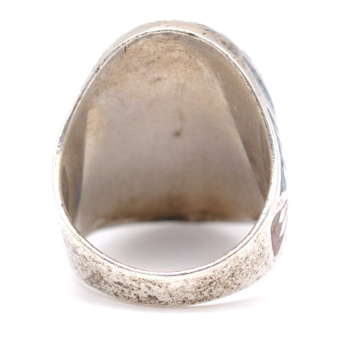 Vintage Sterling Turquoise and Coral Thunderbird Ring 9.5