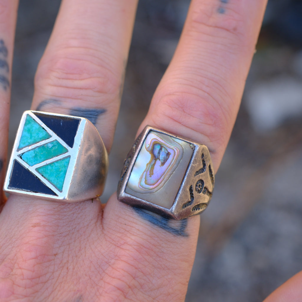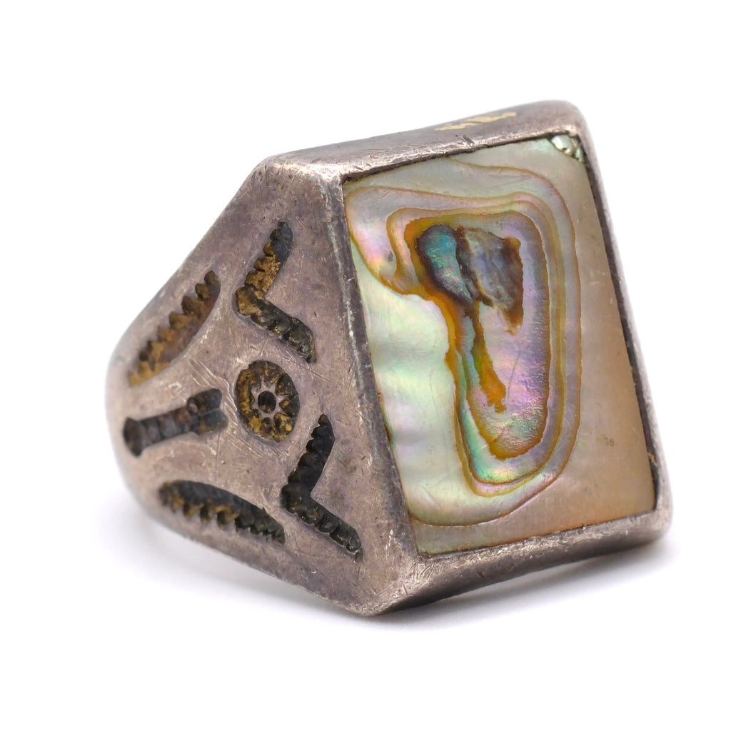 Vintage Sterling Abalone Trading Post Ring