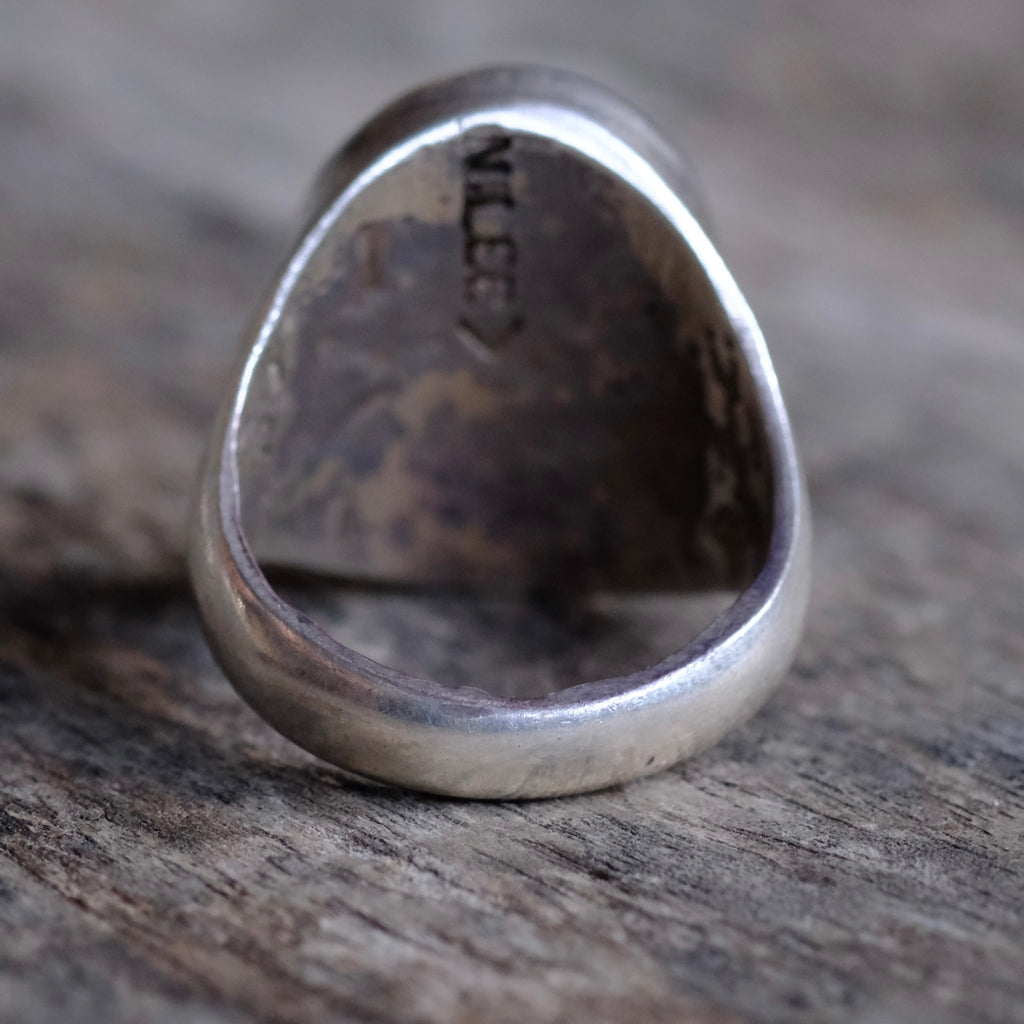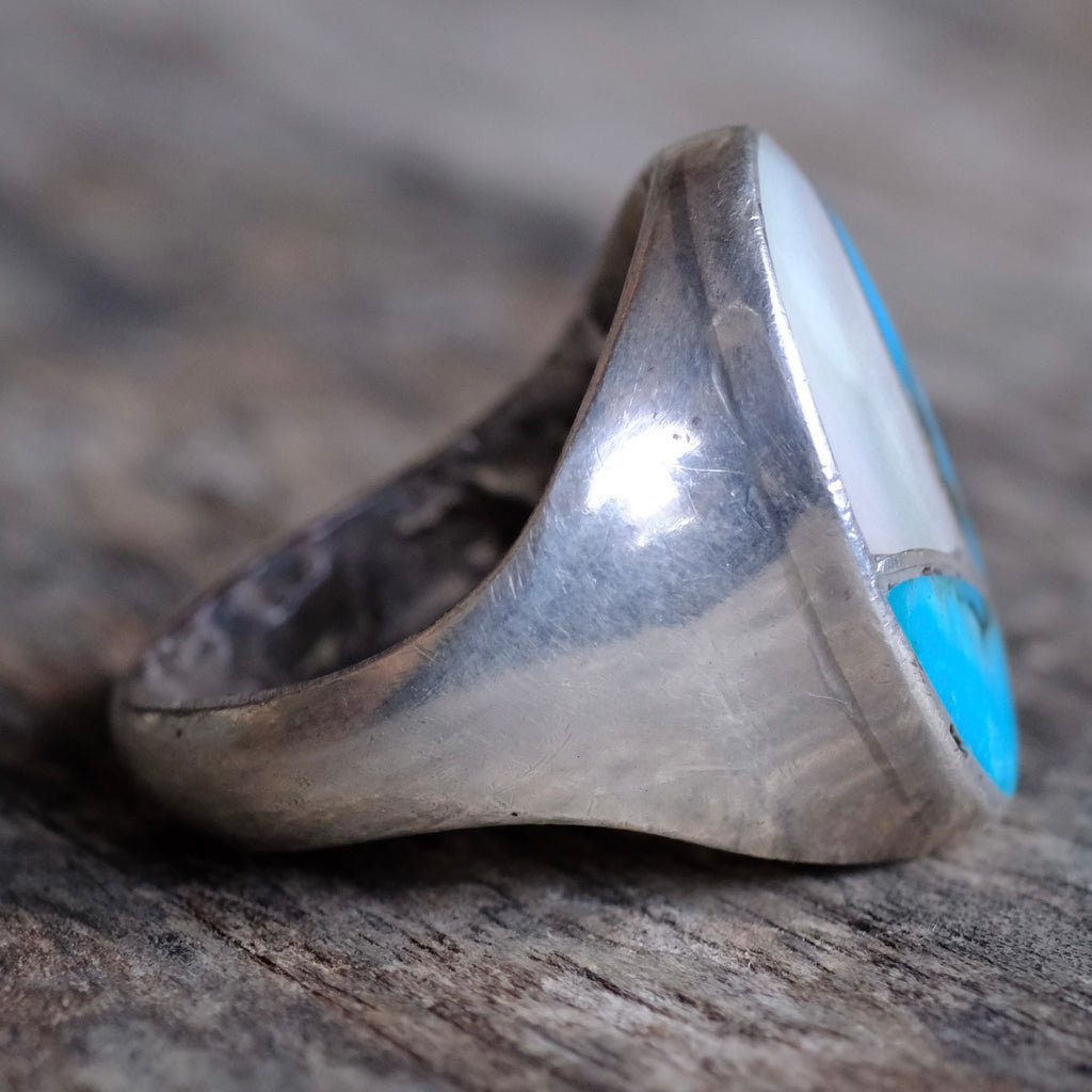 Vintage Sterling Zuni Inlay Turquoise and Mother Of Pearl Ring 10.25