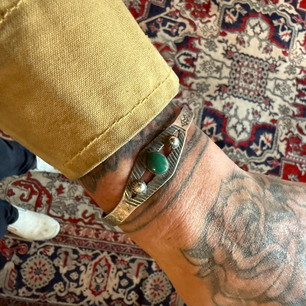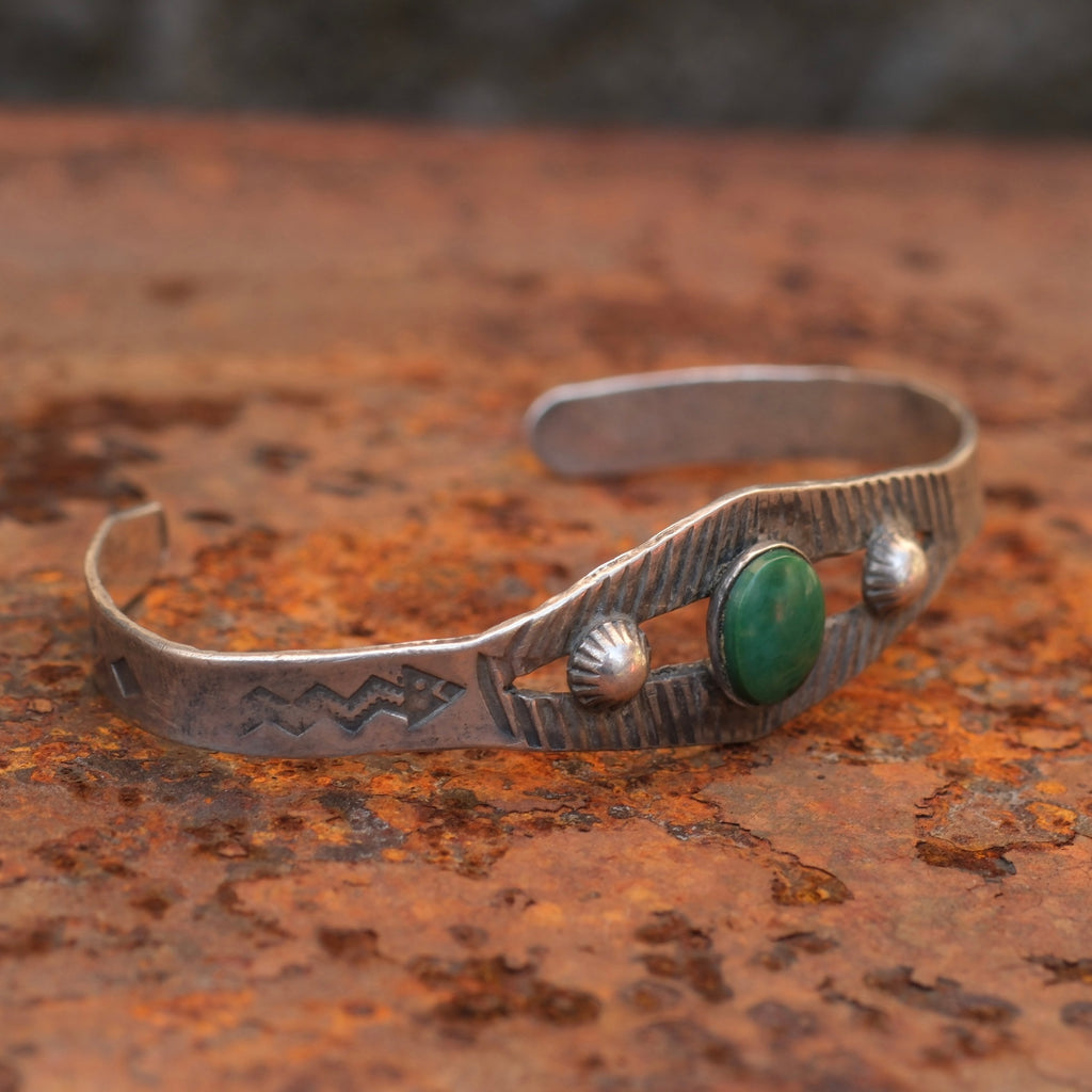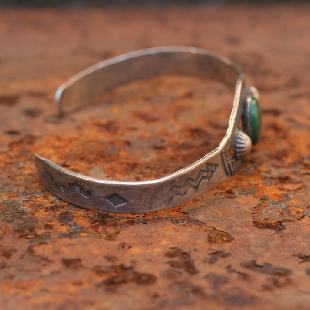 Vintage Sterling Turquoise Stamped Cuff Bracelet