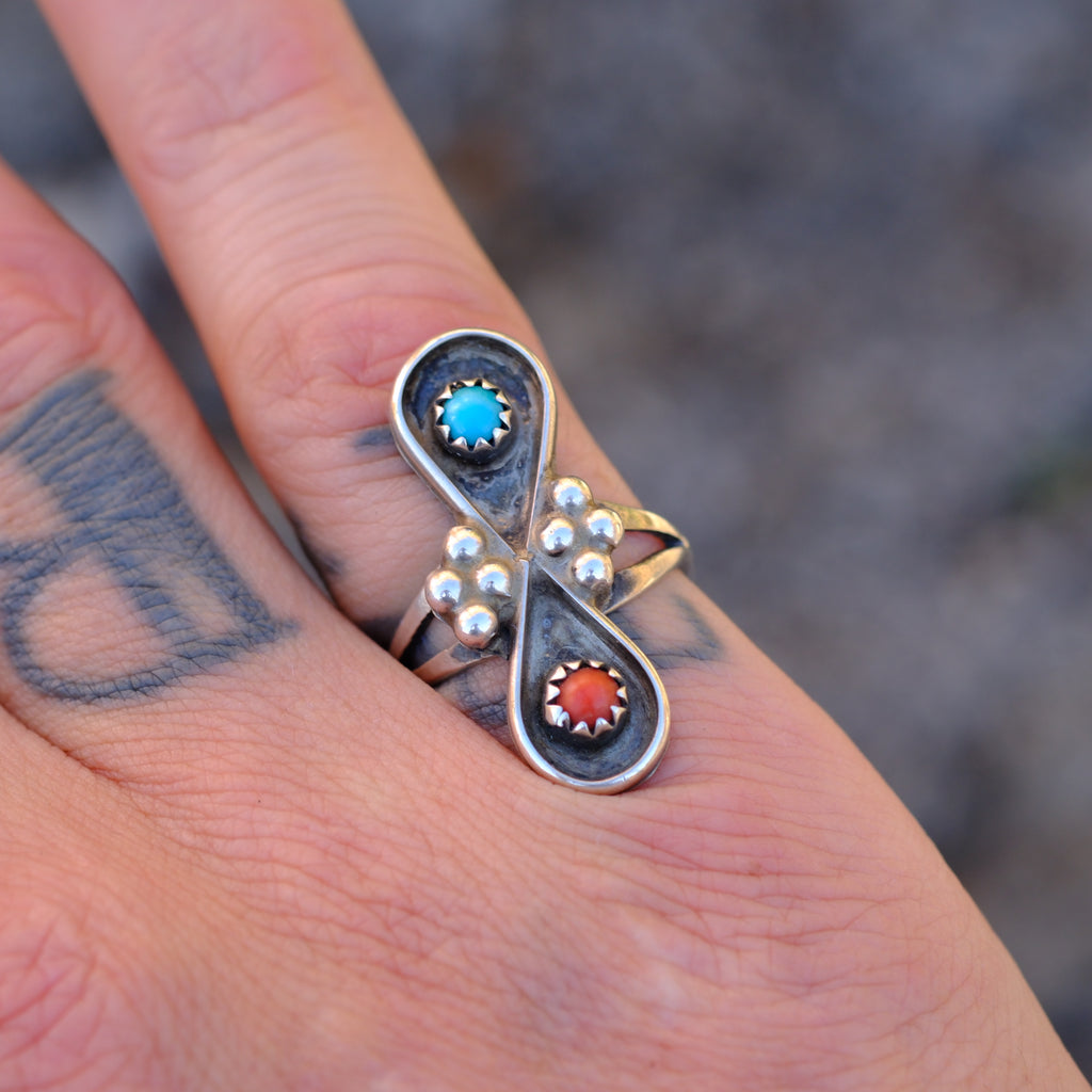 Vintage Sterling Turquoise and Coral Ring