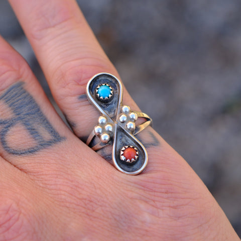 Vintage Sterling Turquoise and Coral Ring 5.5