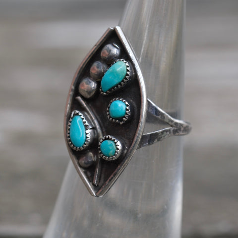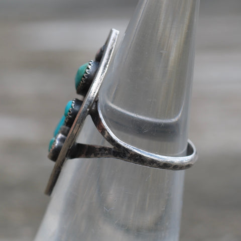 Vintage Sterling Turquoise Cluster Ring 4.25