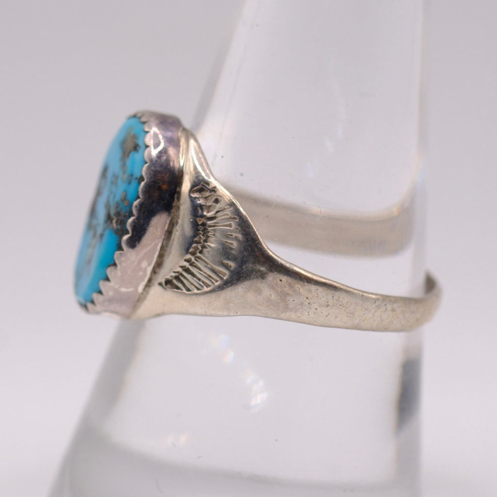Vintage Sterling Turquoise Stamped Band Ring 9.25