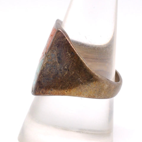 Vintage Sterling Turquoise and Coral Inlay Ring 9.5