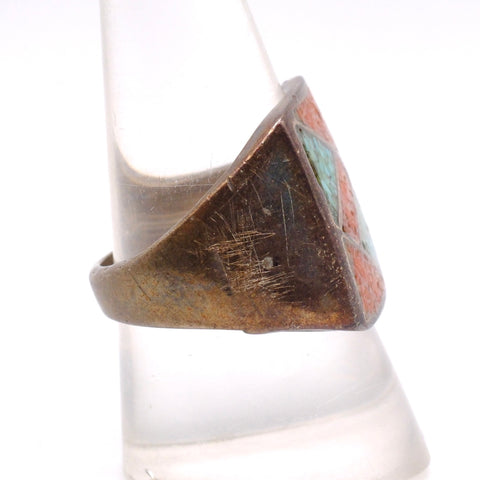 Vintage Sterling Turquoise and Coral Inlay Ring