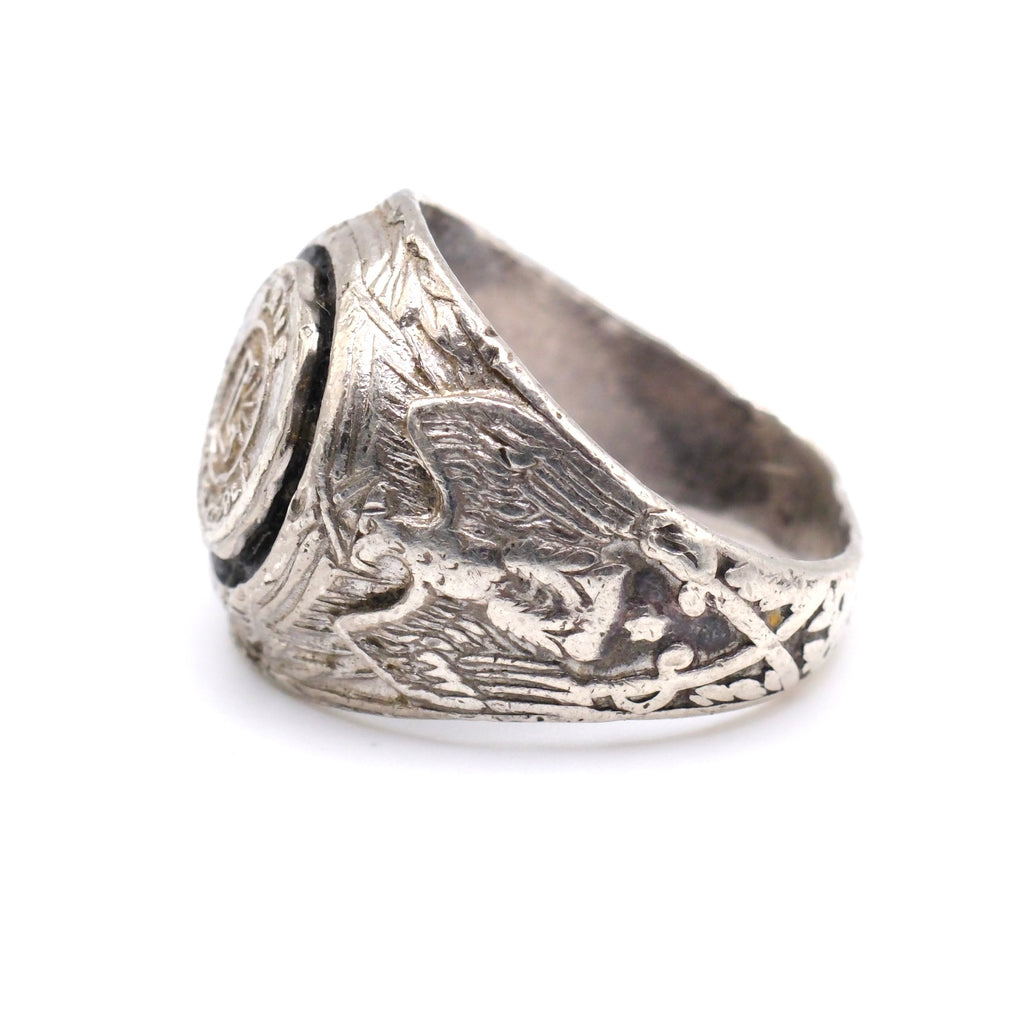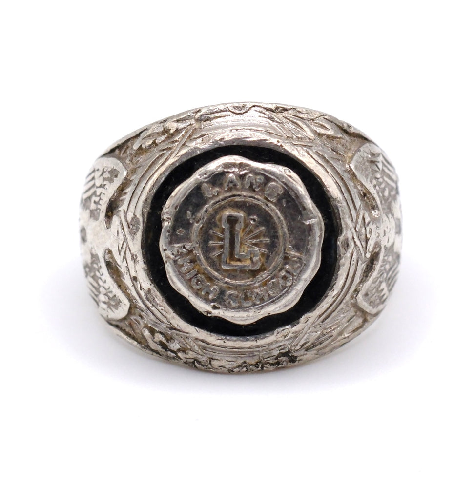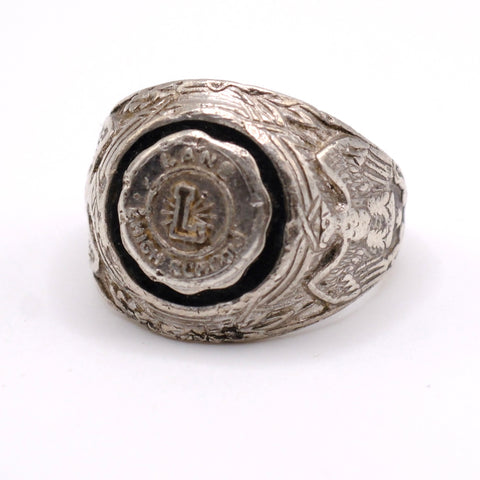 Vintage Sterling L Initial Military Signet Ring 6.5