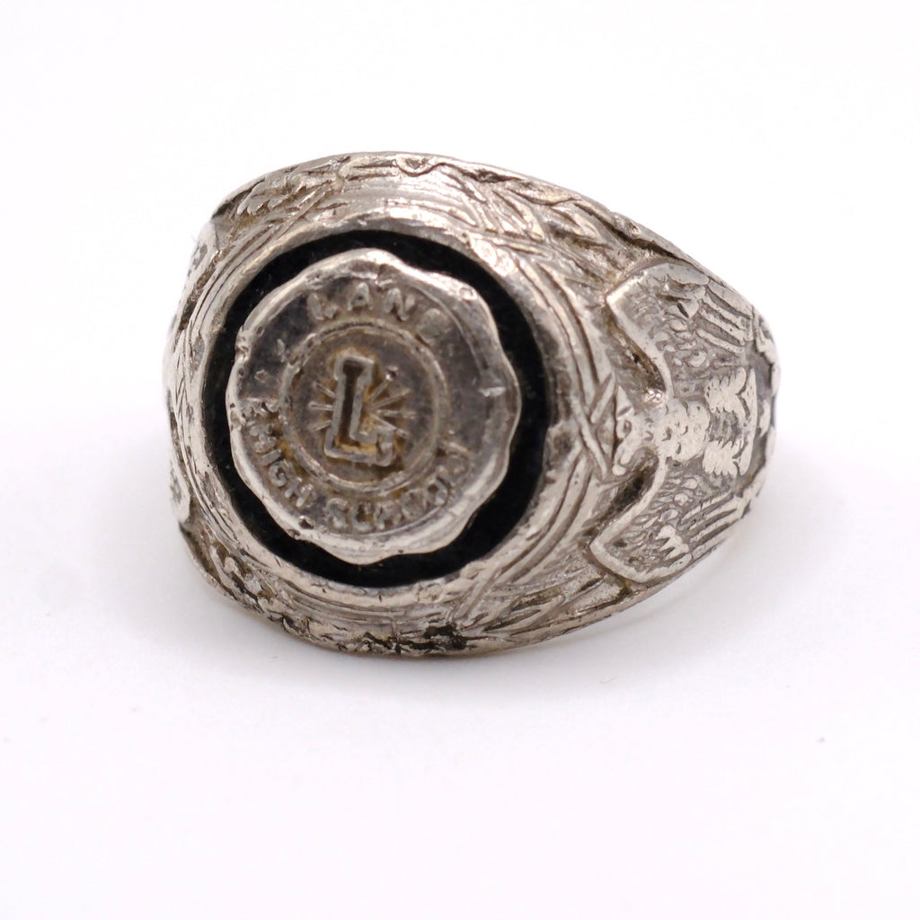 Vintage Sterling L Initial Military Signet Ring
