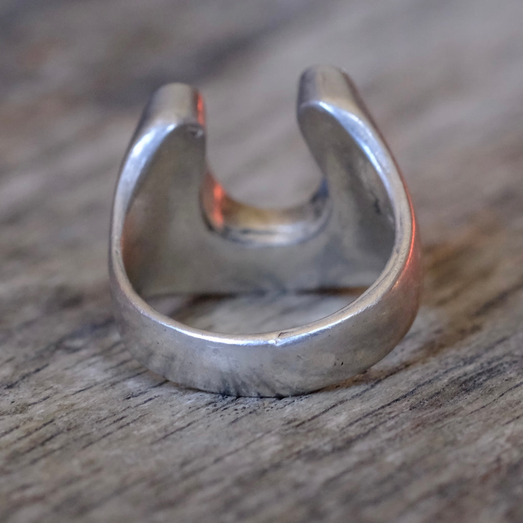 Vintage Sterling Turquoise and Coral Inlay Horseshoe Ring 4