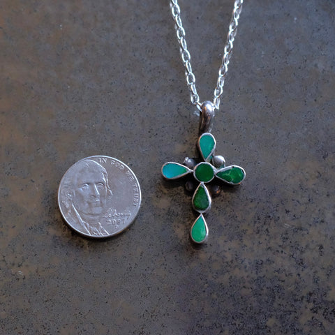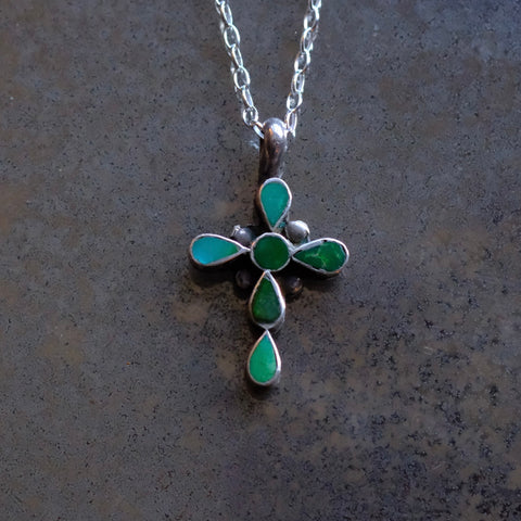 Vintage Sterling Turquoise Inlay Cross Necklace
