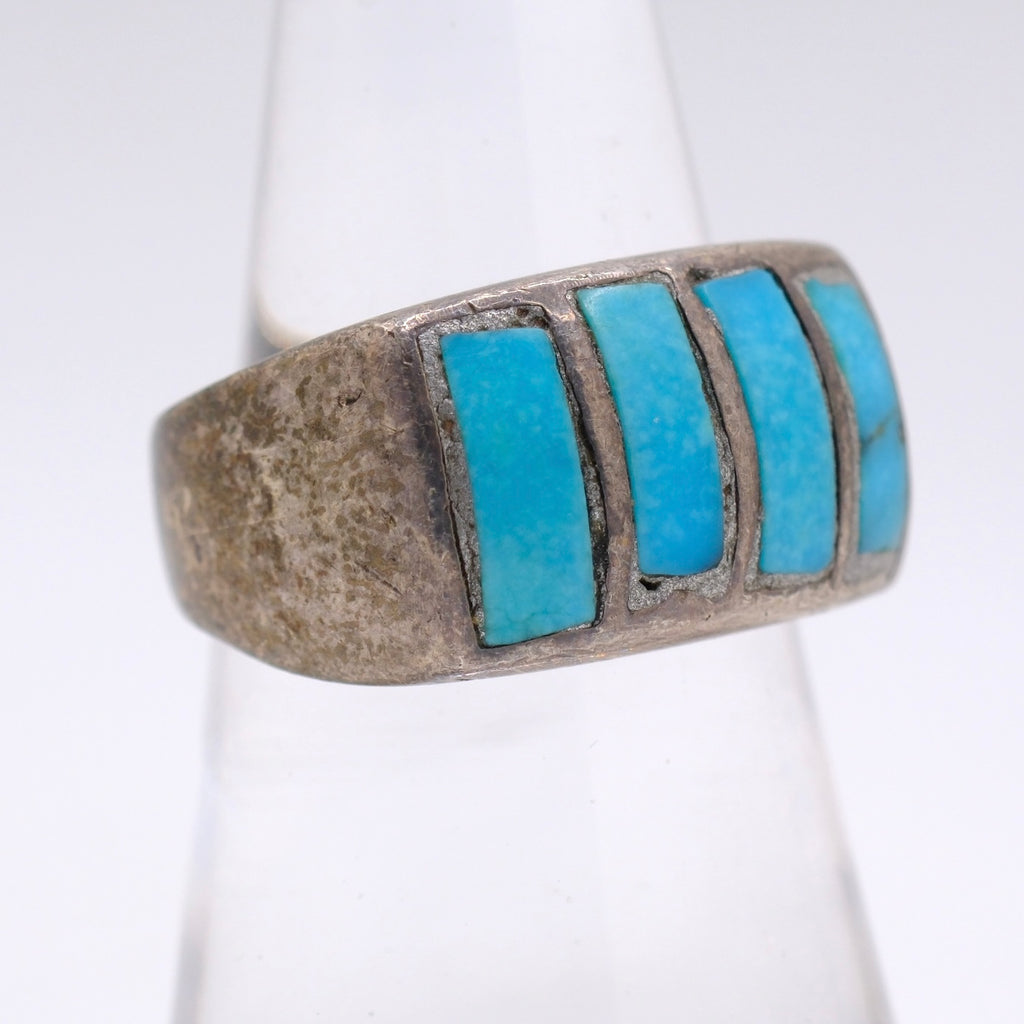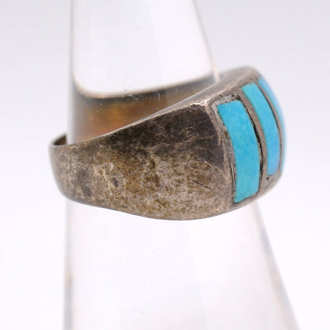 Vintage Sterling Turquoise Inlay Band 6.5