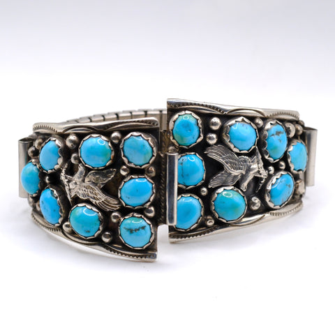 Vintage Sterling Turquoise Cluster Eagle Watch Band