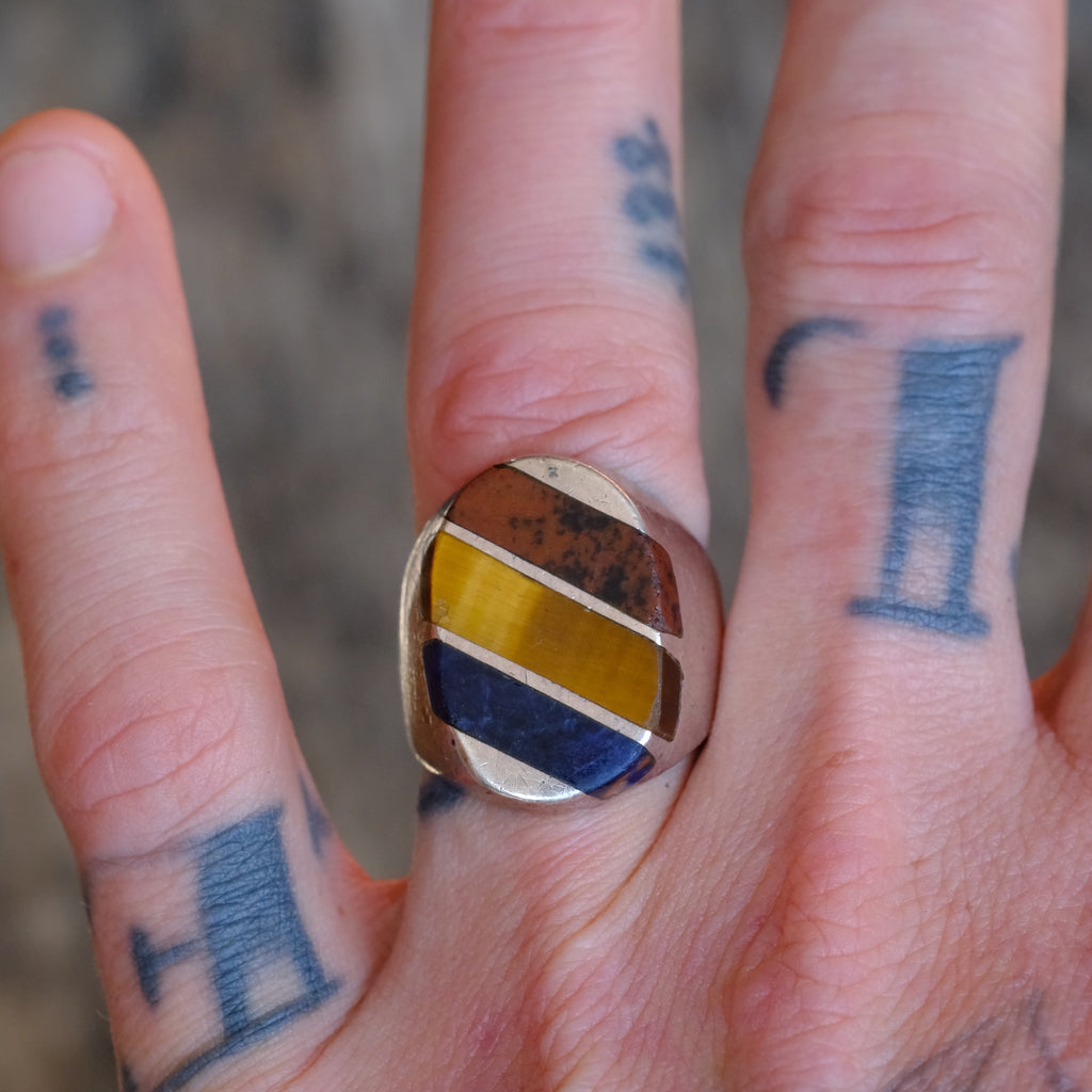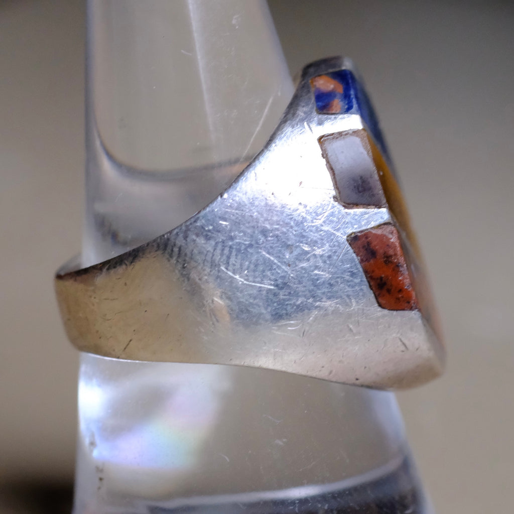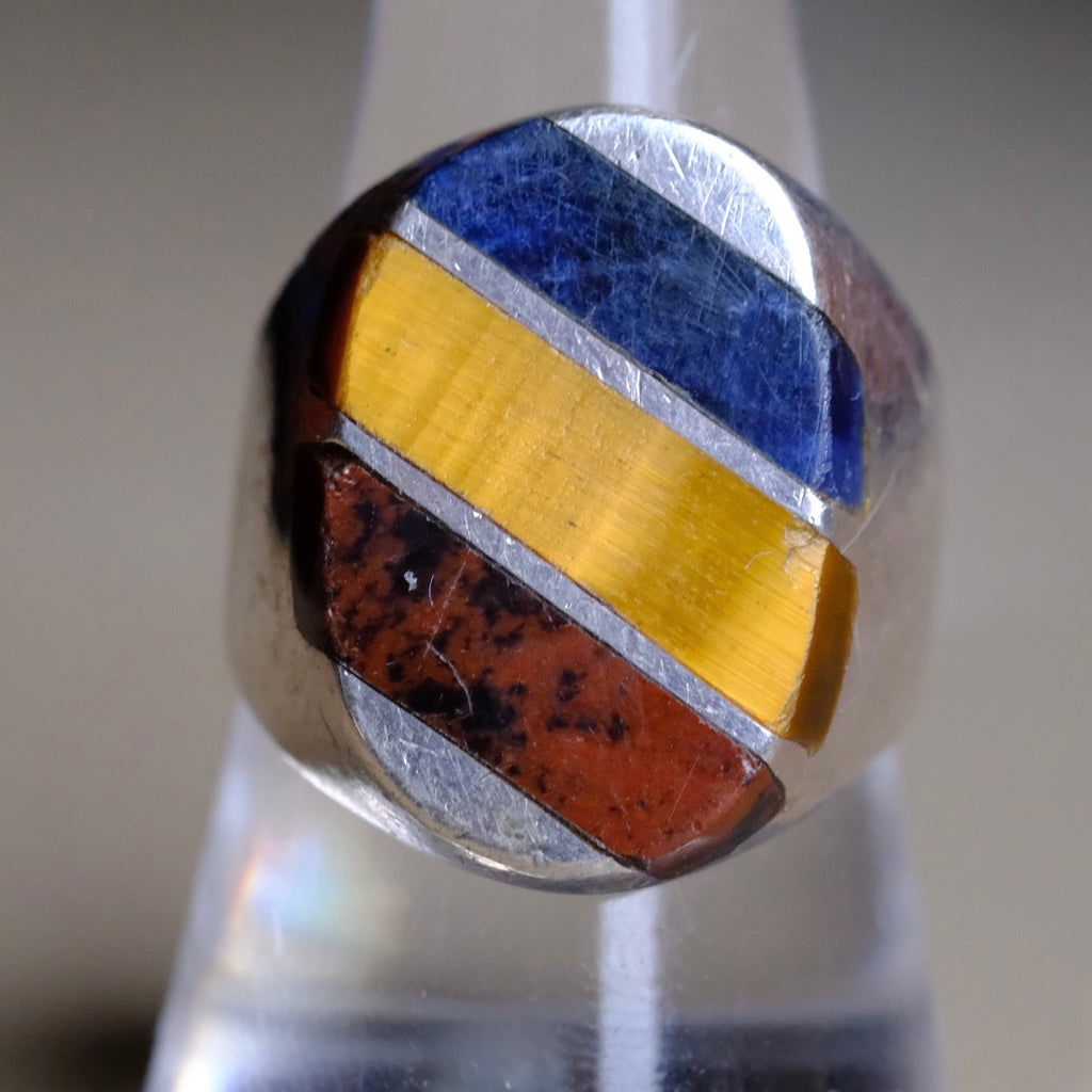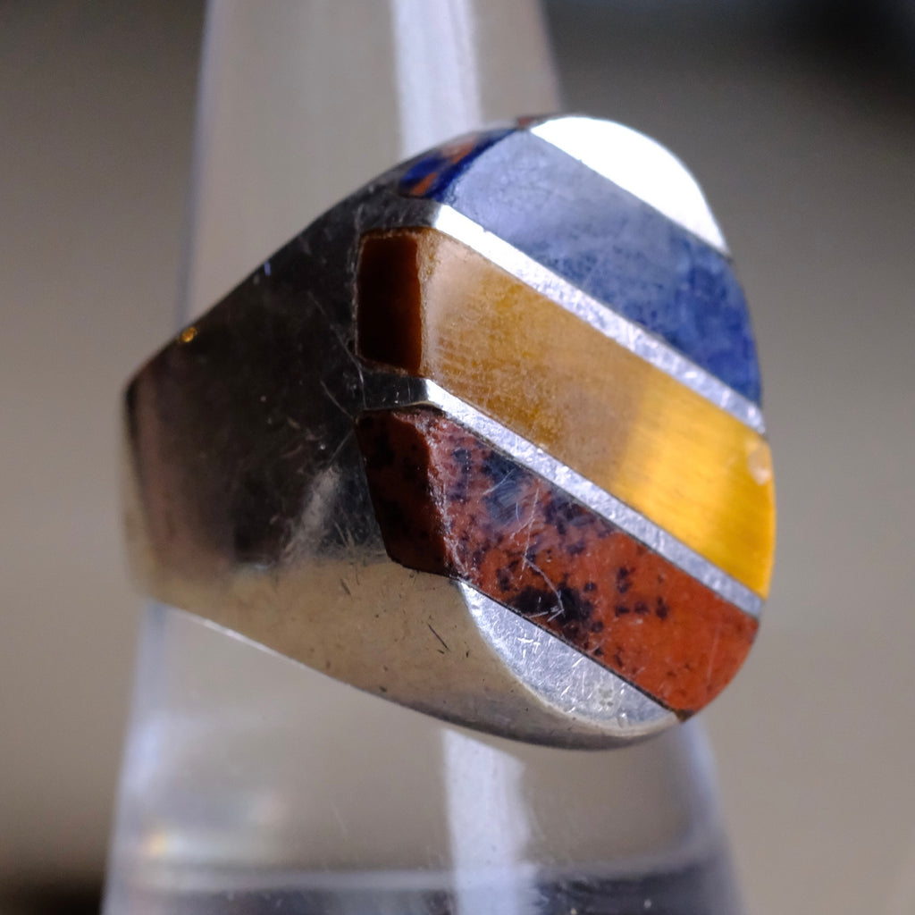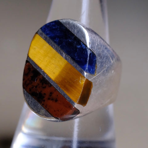 Vintage Sterling Multistone Inlay Striper Ring