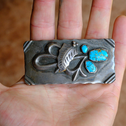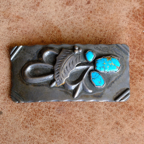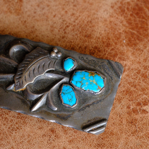 Vintage Sterling 3-Stone Turquoise Ladies Belt Buckle