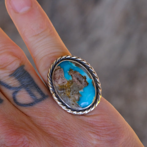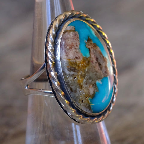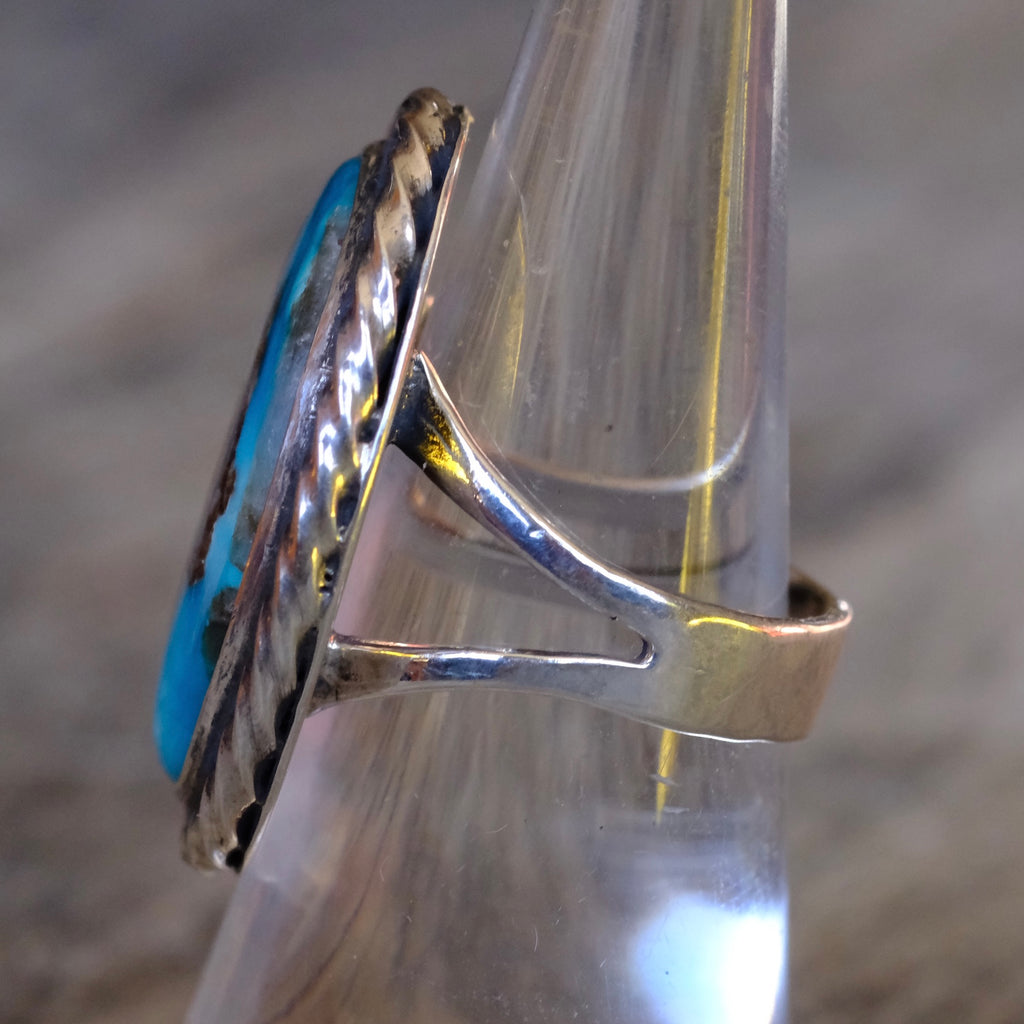 Vintage Sterling Turquoise Roper Ring 6.75