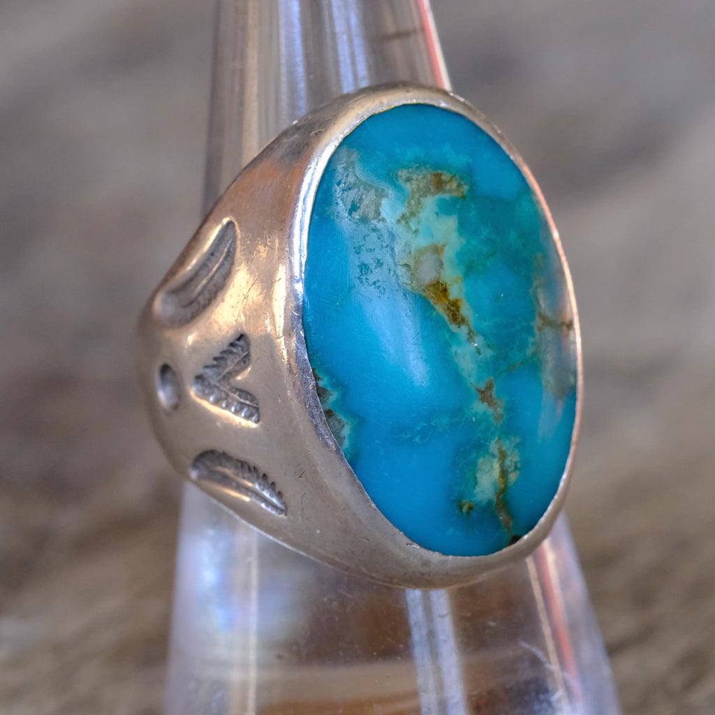 Vintage Sterling Turquoise Stamped V Ring