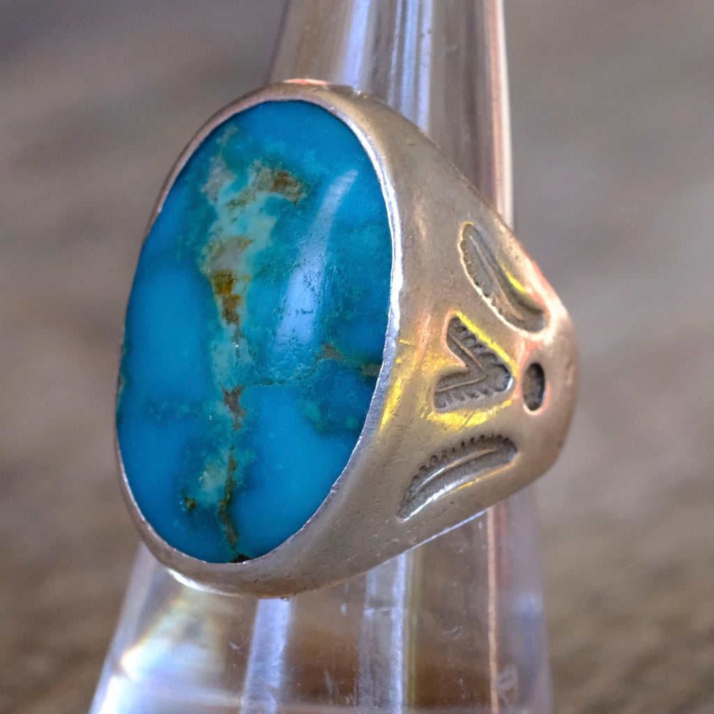 Vintage Sterling Turquoise Stamped V Ring 8.5