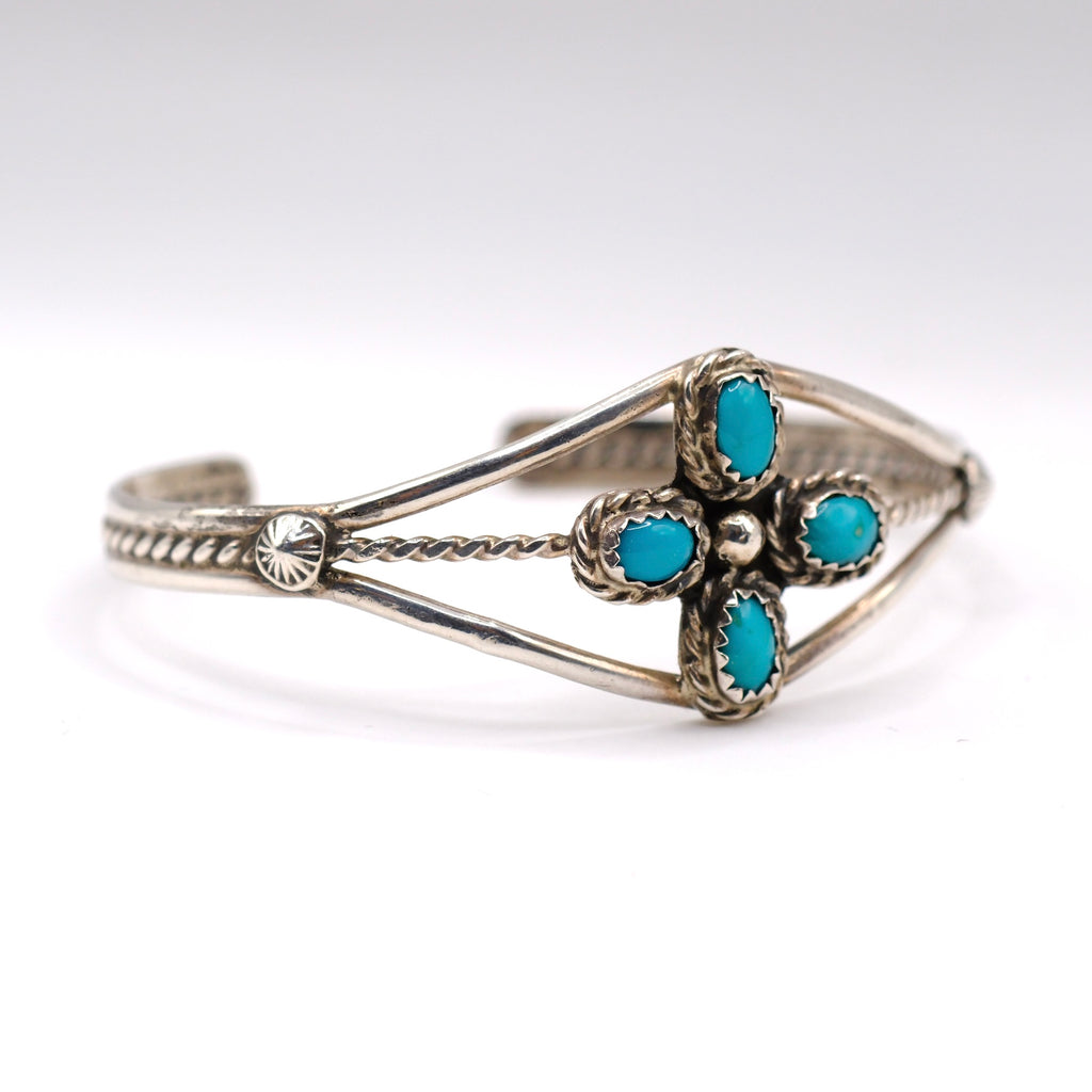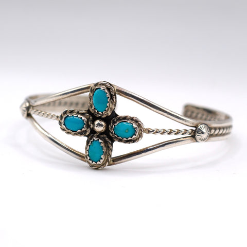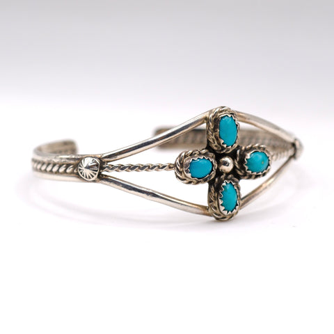 Vintage Sterling Turquoise Cluster Cuff Bracelet