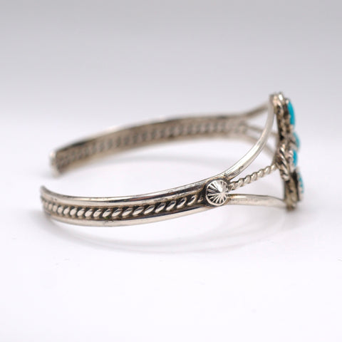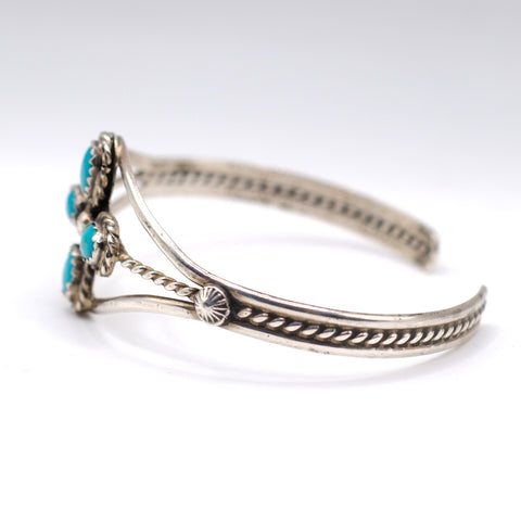 Vintage Sterling Turquoise Cluster Cuff Bracelet 6"