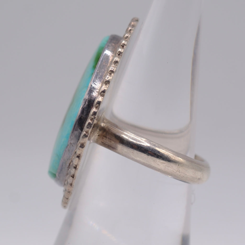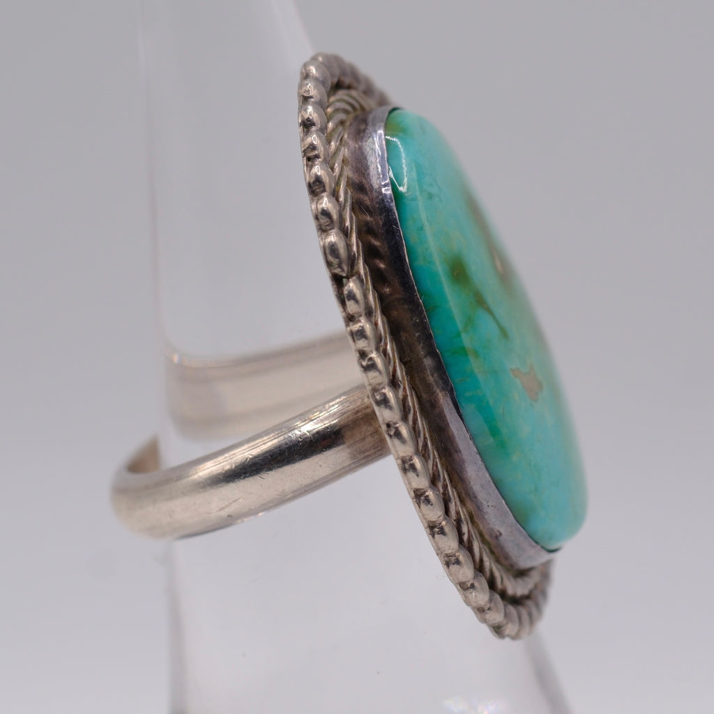 Vintage Sterling Turquoise Roper Ring 6.75