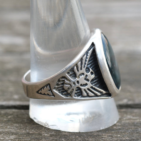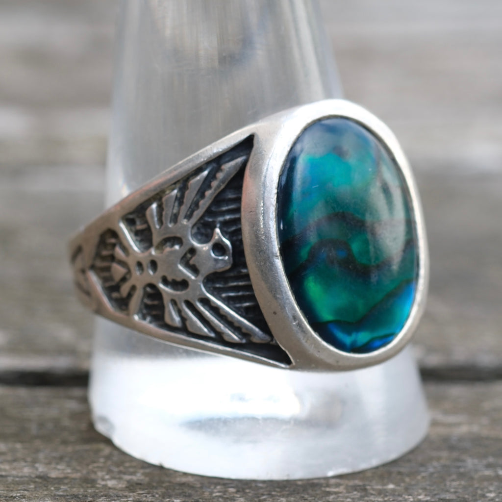 Vintage Sterling Abalone Thunderbird Ring 12.75
