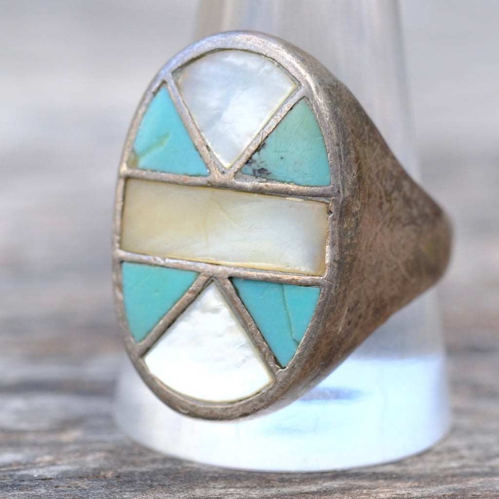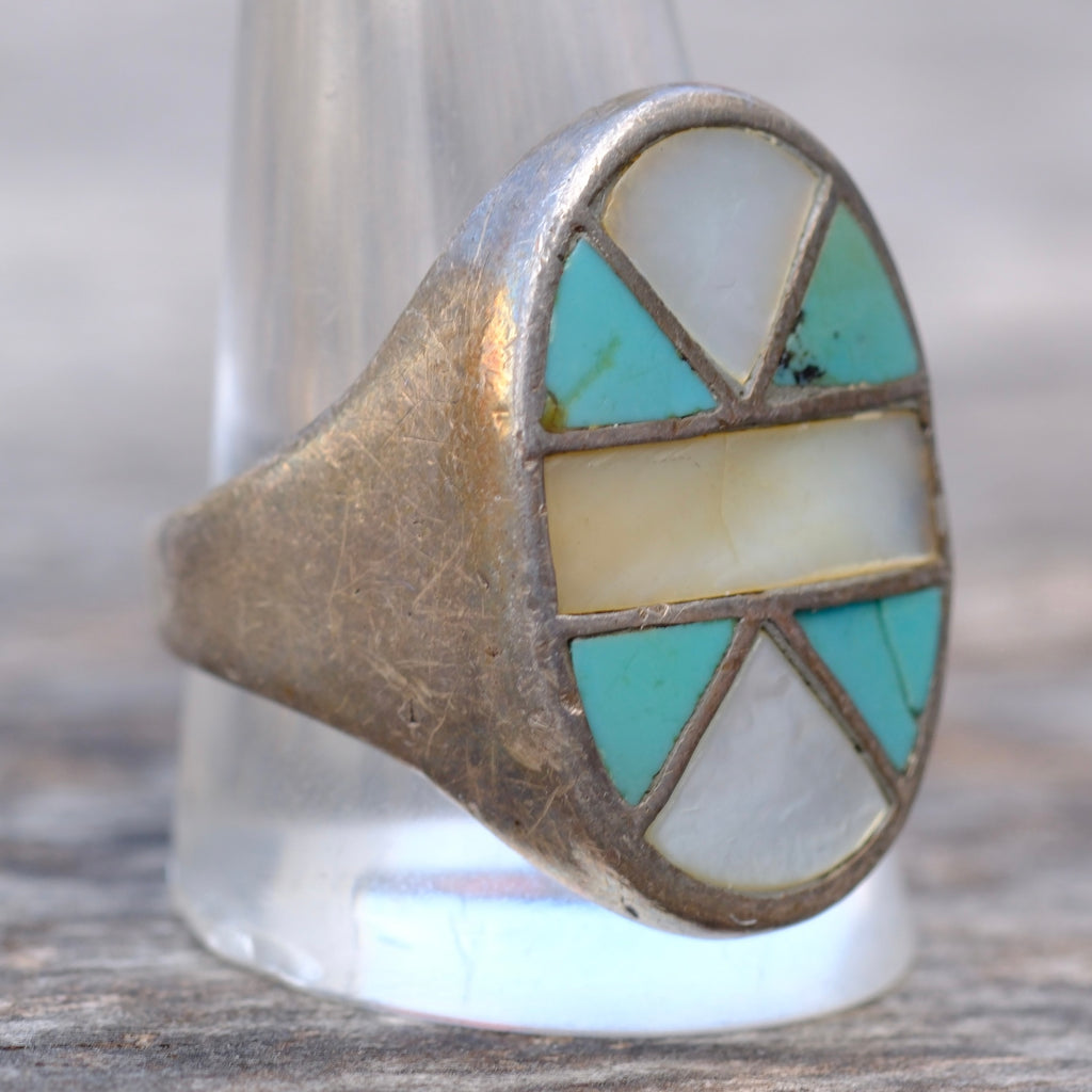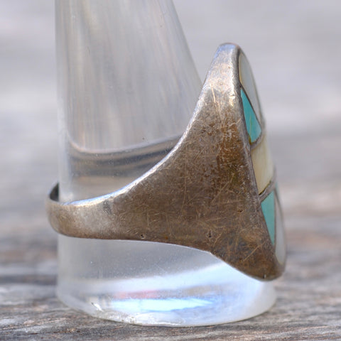 Vintage Sterling Turquoise and Mother Of Pearl Inlay Ring