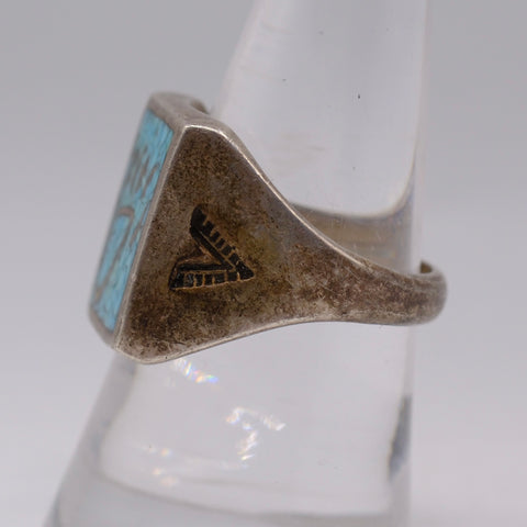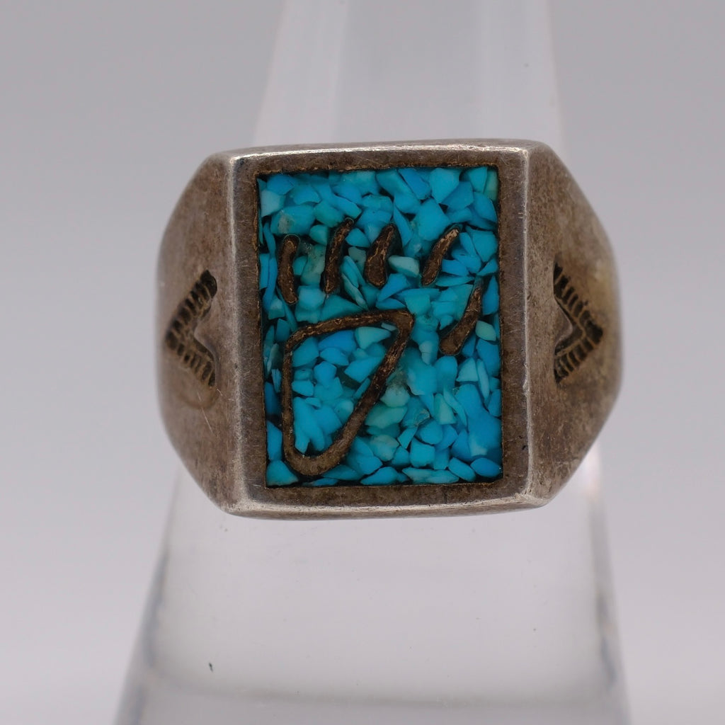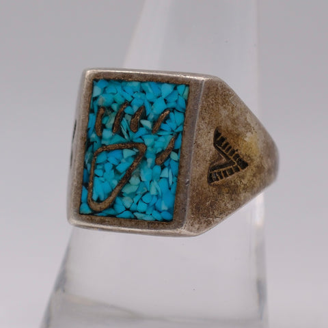 Vintage Sterling Crushed Turquoise Inlay Bear Paw Ring 8.75