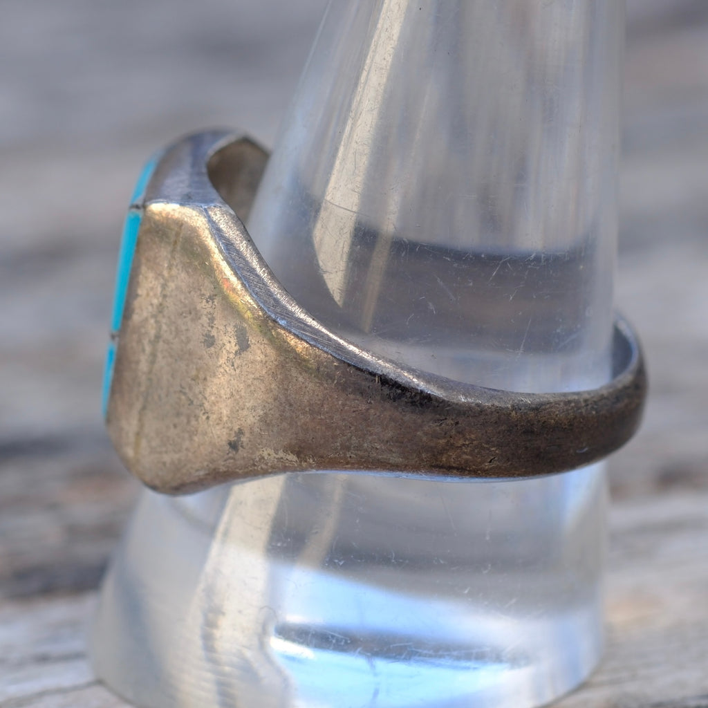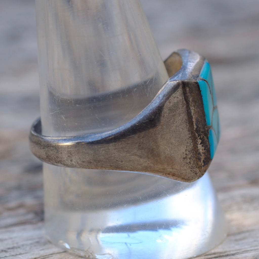 Vintage Sterling Turquoise Inlay Ring 10.75
