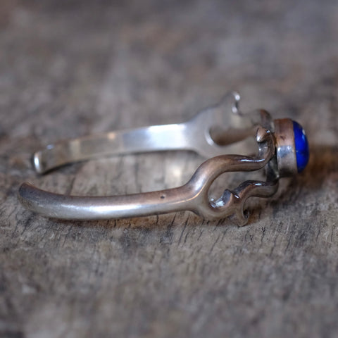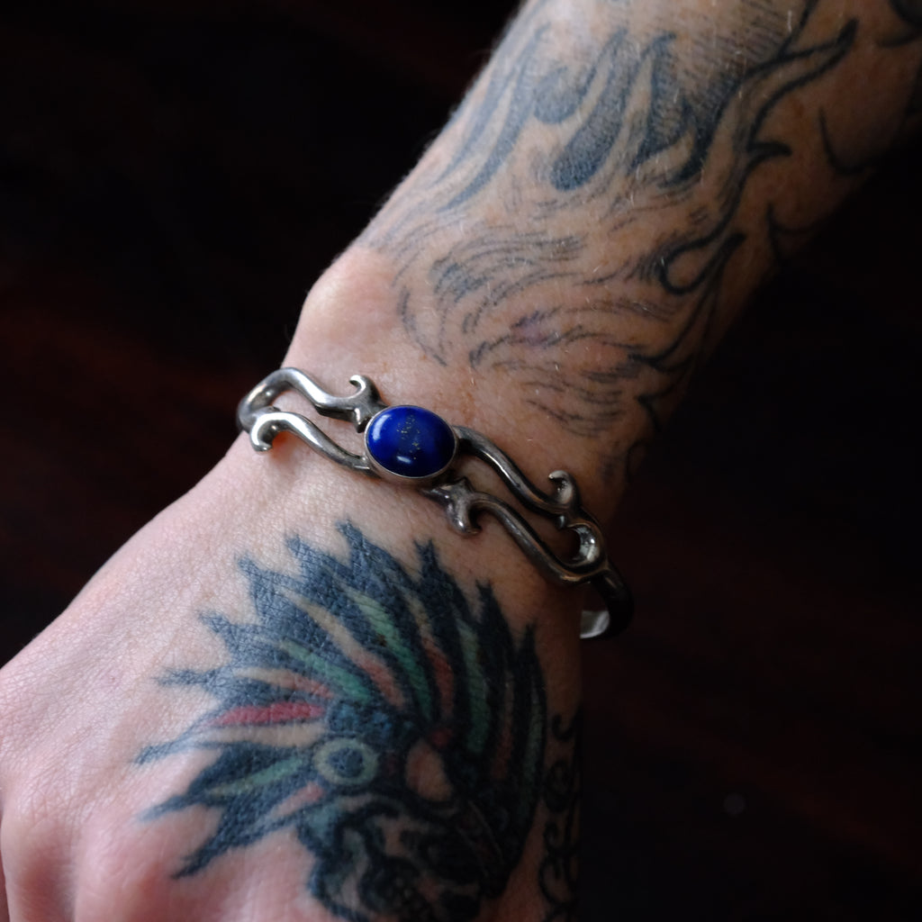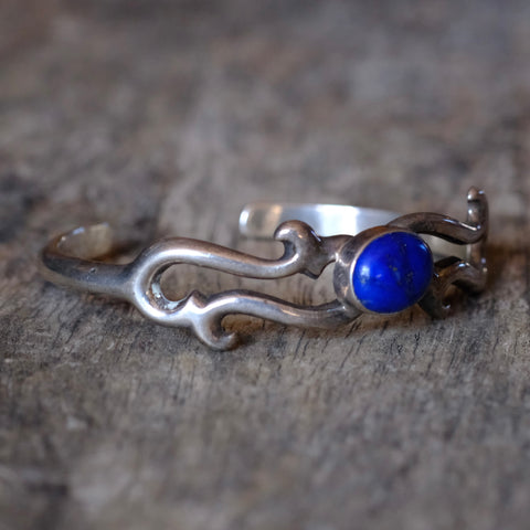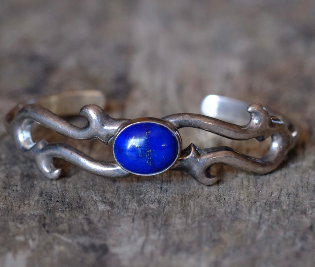 Vintage Sterling Lapis Sandcast Cuff Bracelet