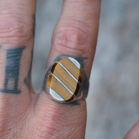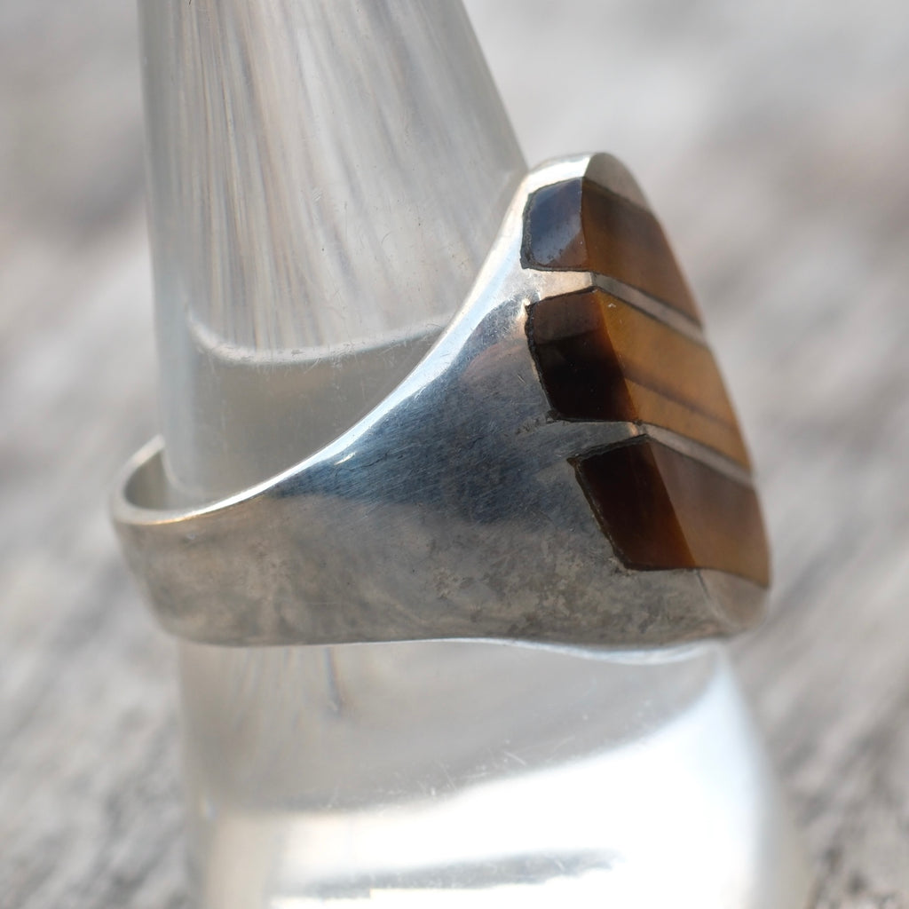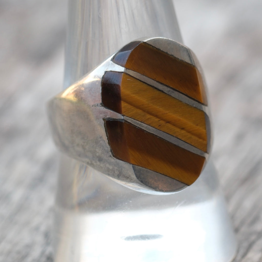 Vintage Sterling Tigers Eye Inlay Striper Ring