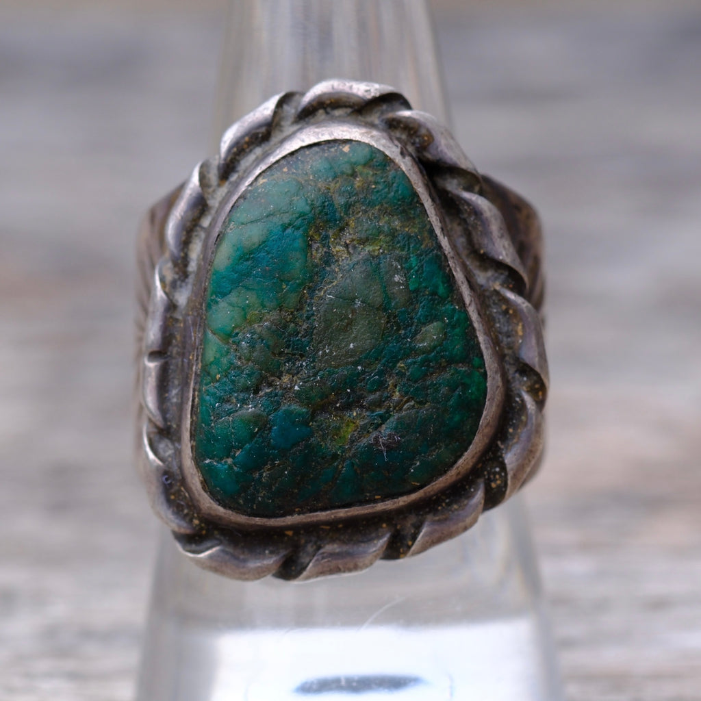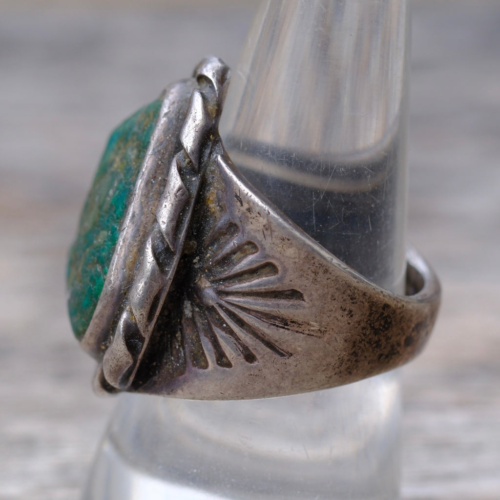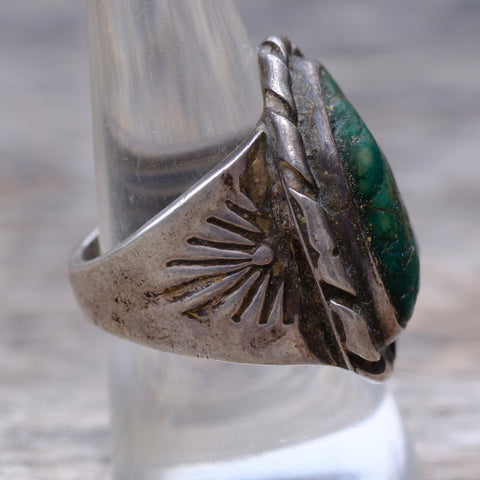 Vintage Sterling Turquoise Stamped Band Mens Ring