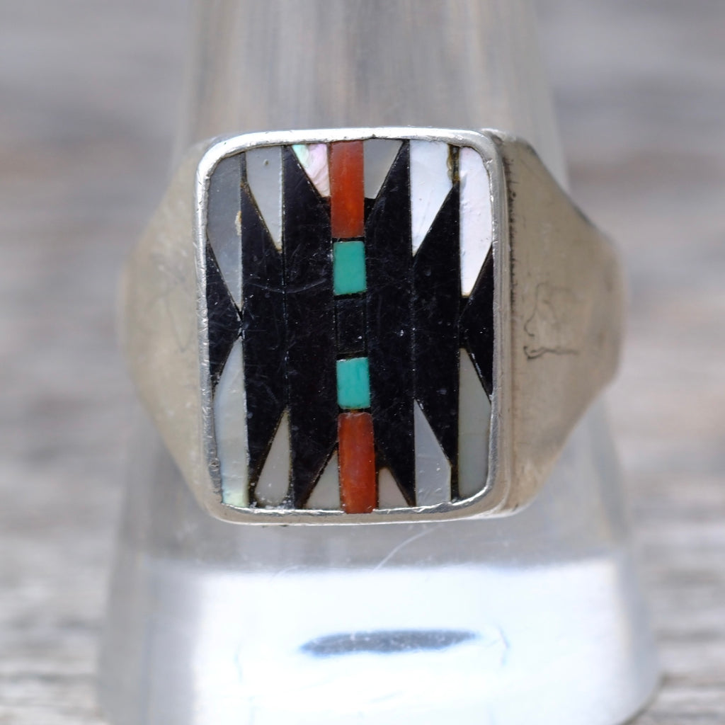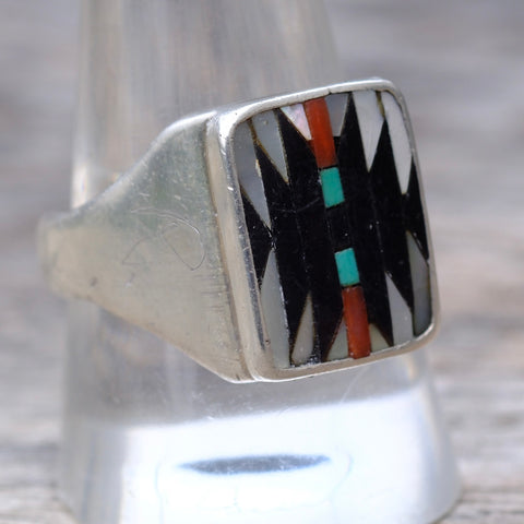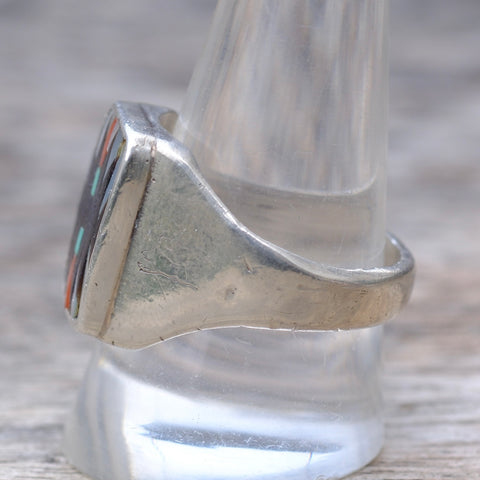Vintage Sterling Zuni Inlay Dishta Ring 11