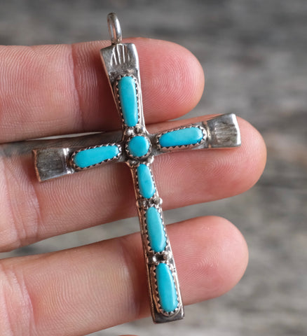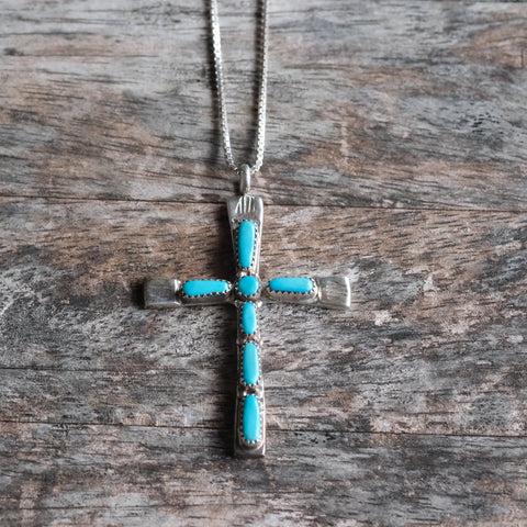 Vintage Sterling 7-Stone Turquoise Cross Necklace