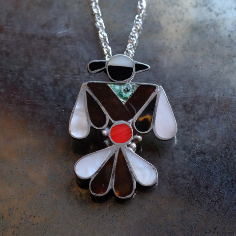 HUGE Vintage Sterling Thunderbird Inlay Necklace