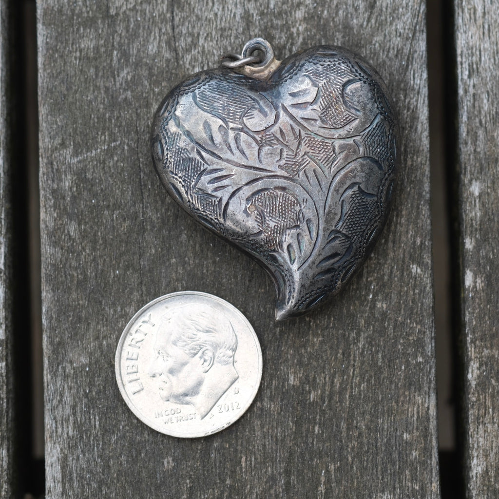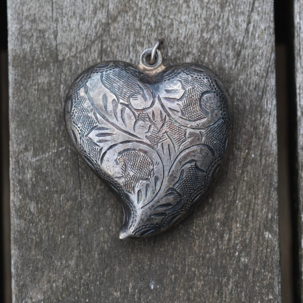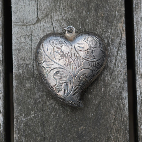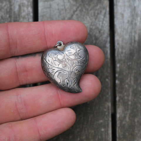 Vintage Sterling Engraved Heart Pendant