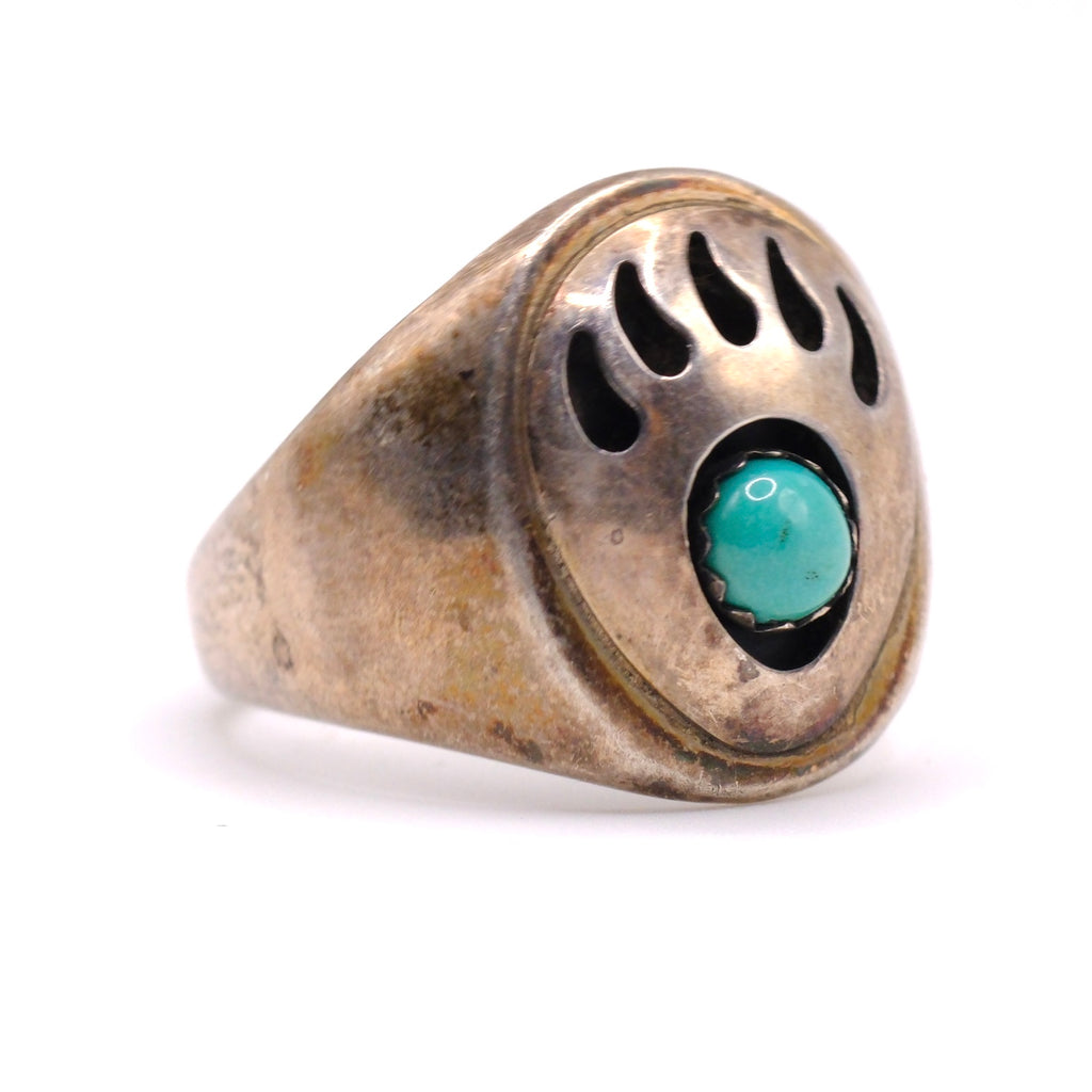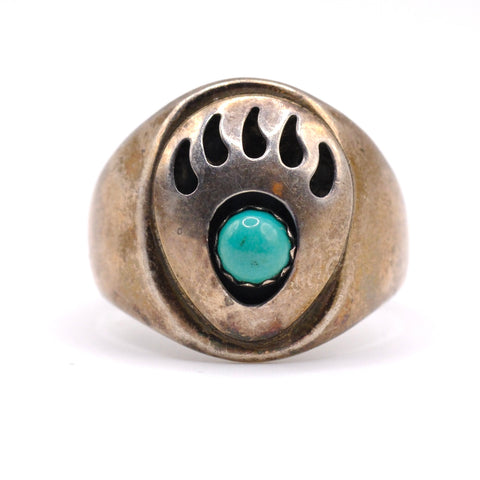 Vintage Sterling Turquoise Bear Paw Ring 10