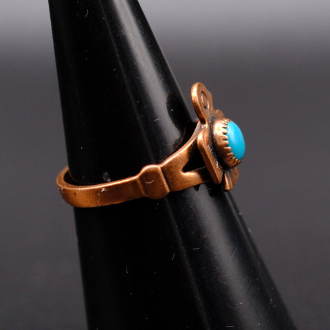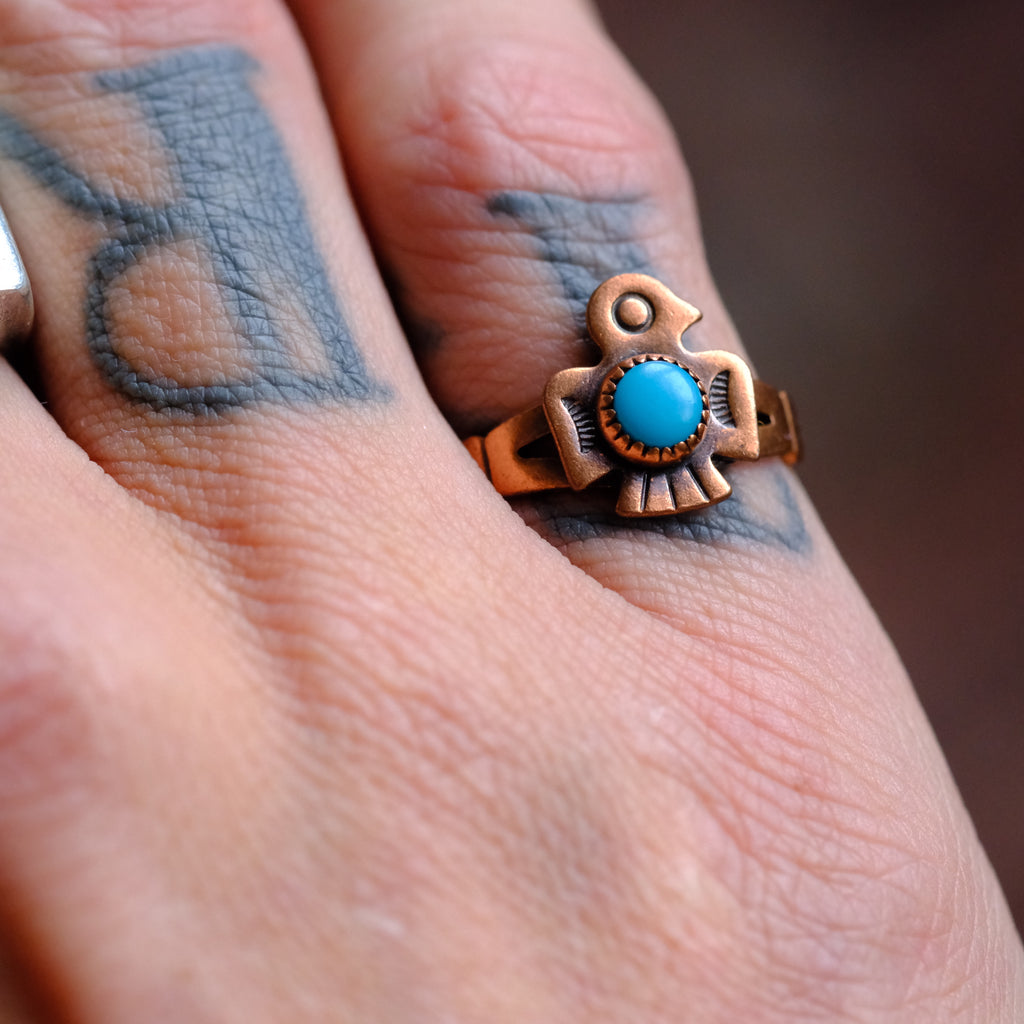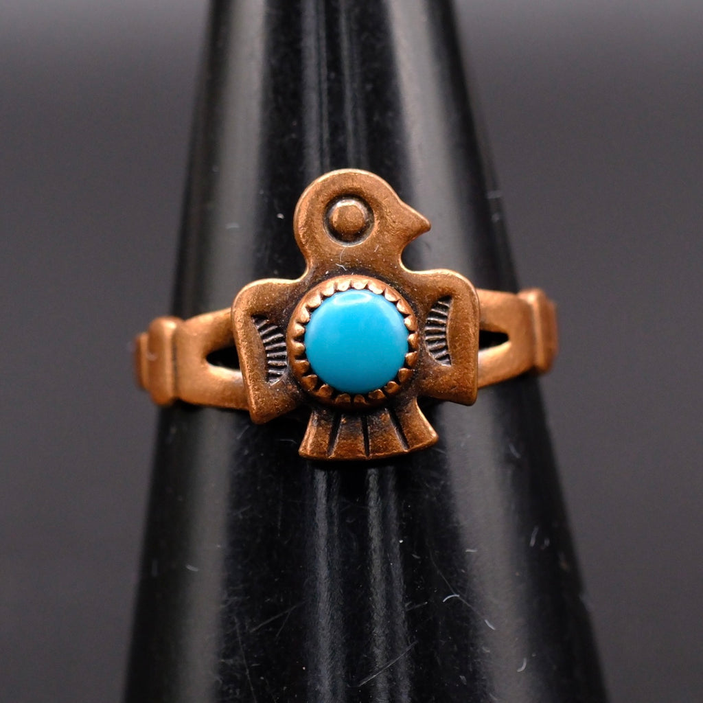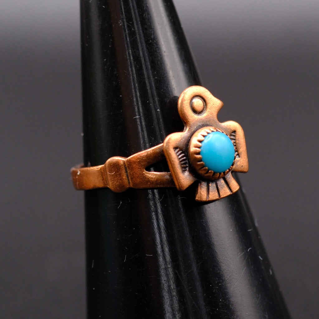 Vintage Copper Turquoise Thunderbird Ring 6.5