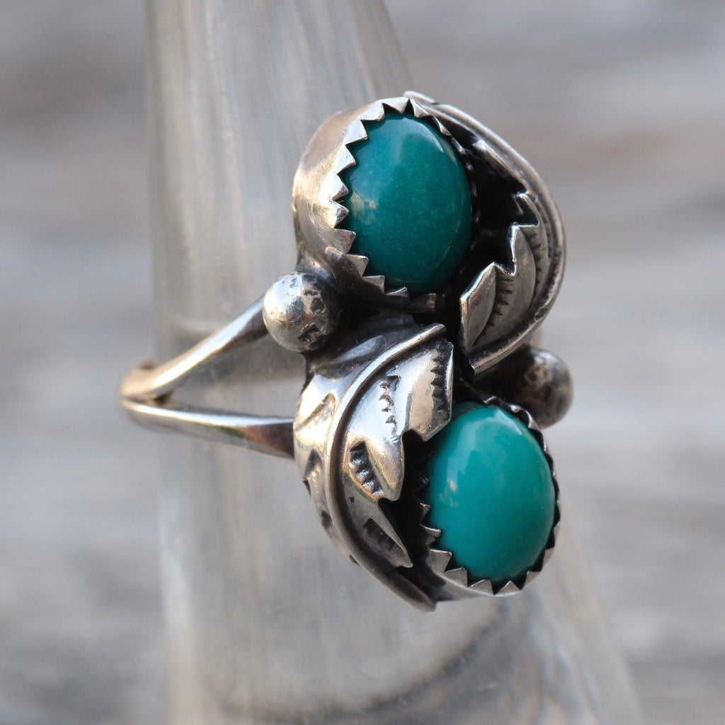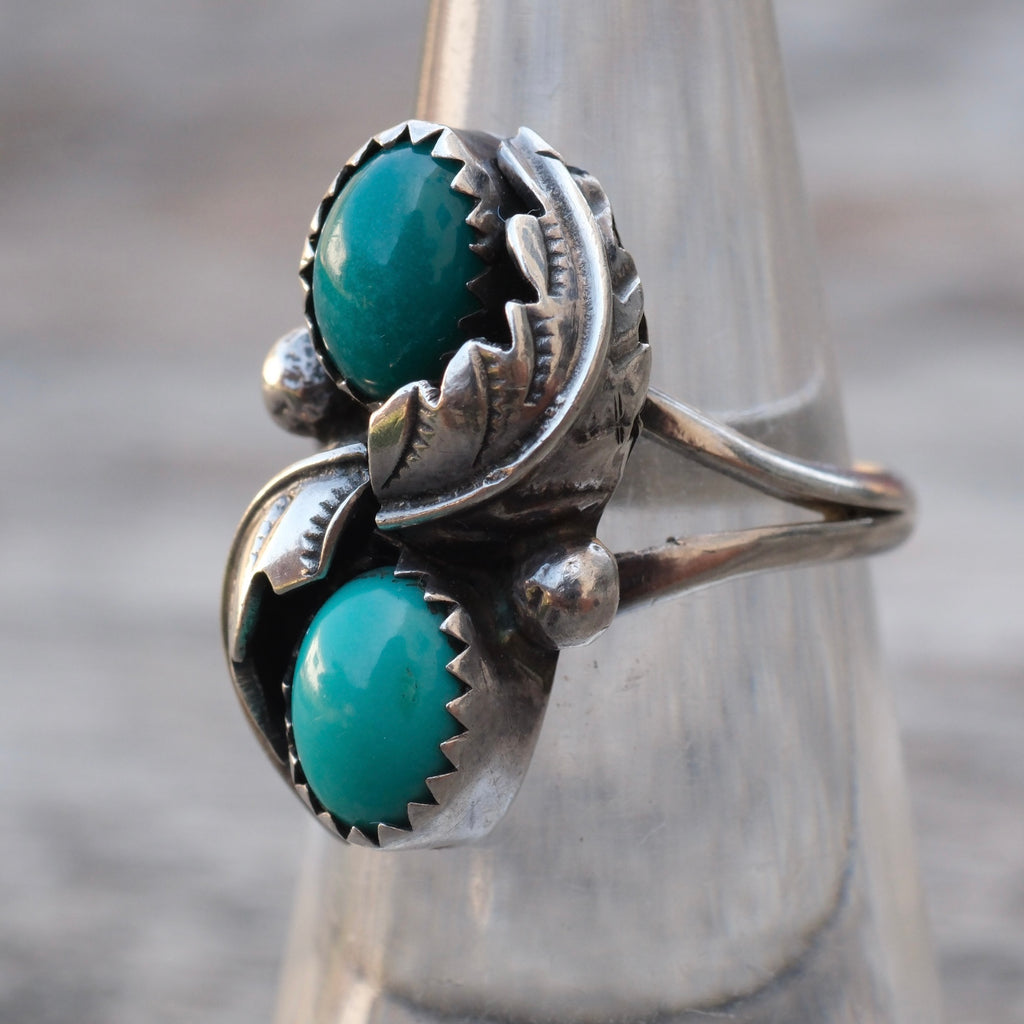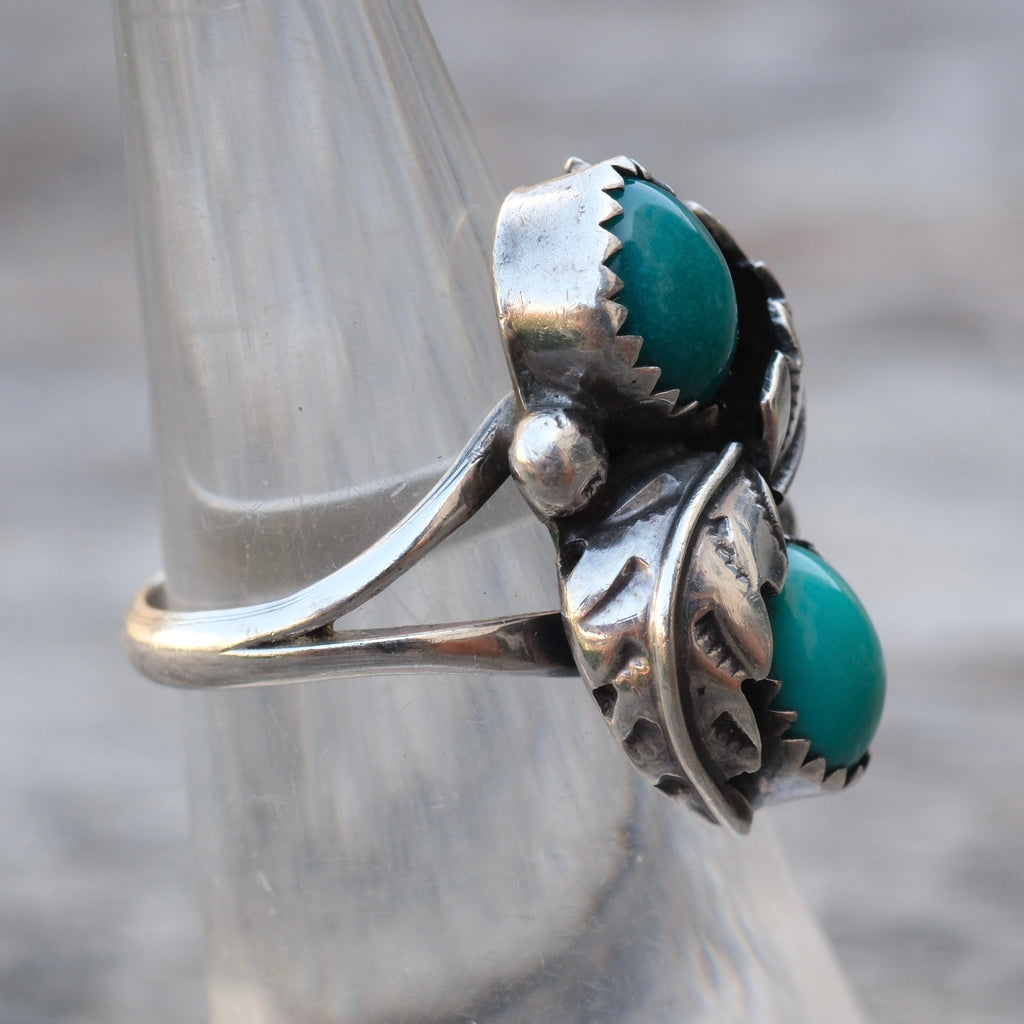 Vintage Sterling 2-Stone Turquoise Feather Ring 5.75