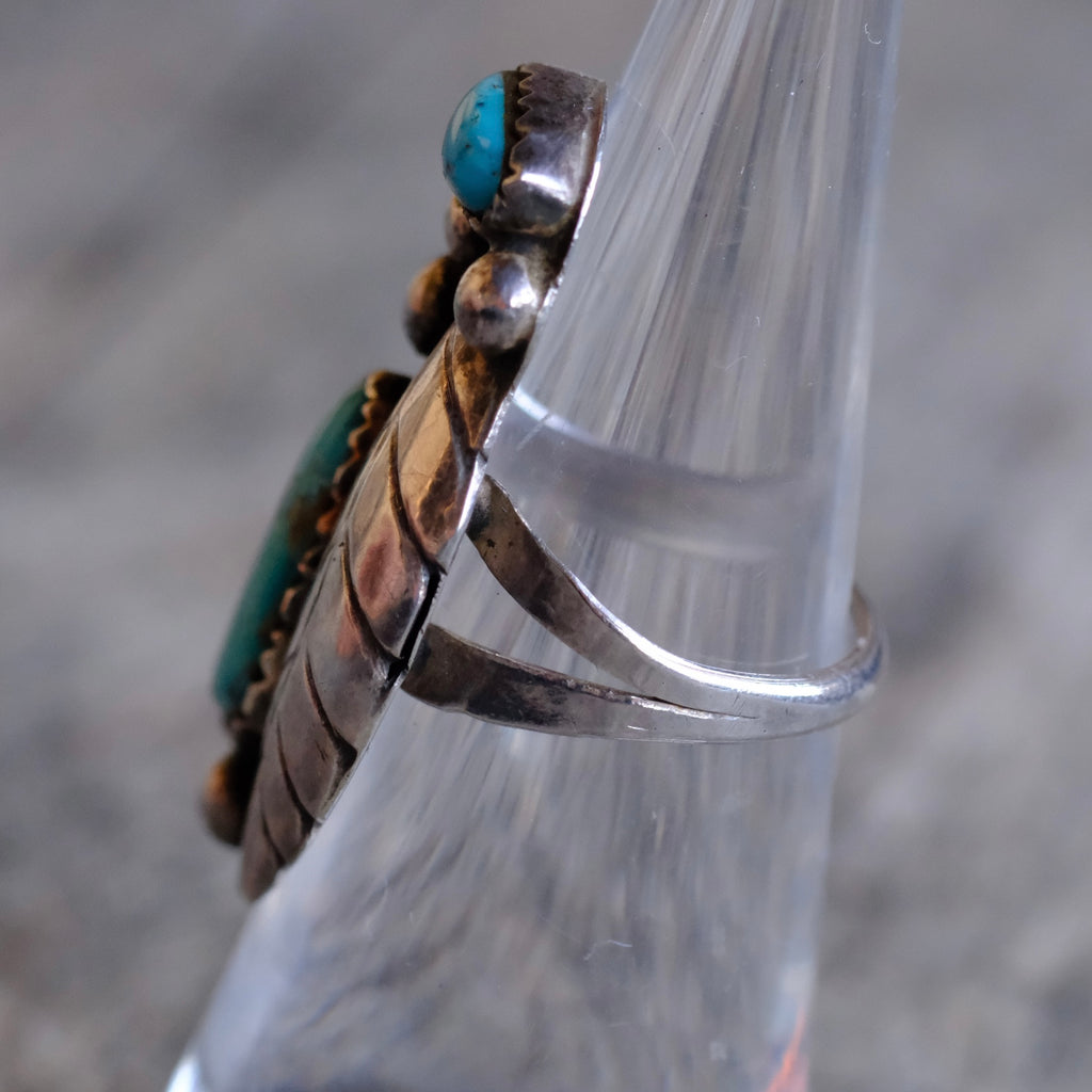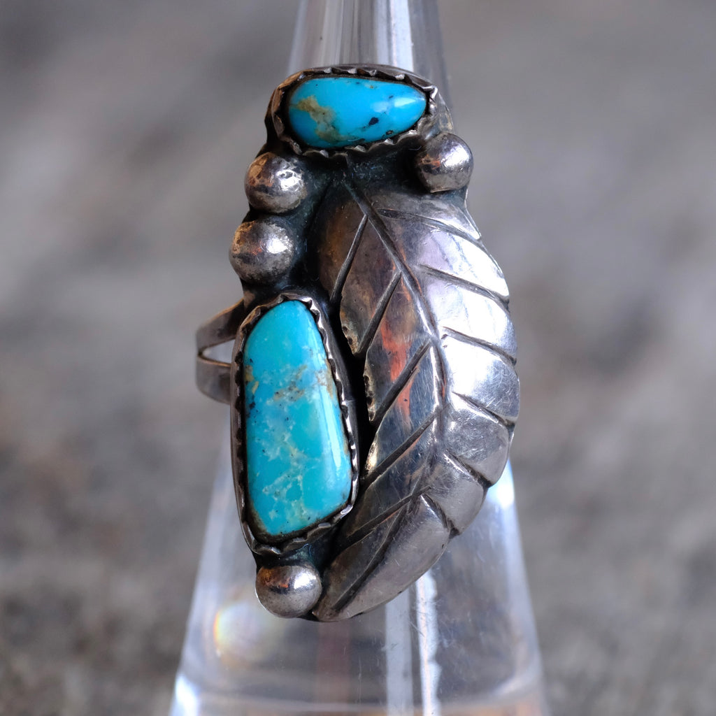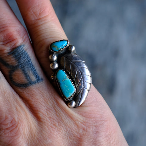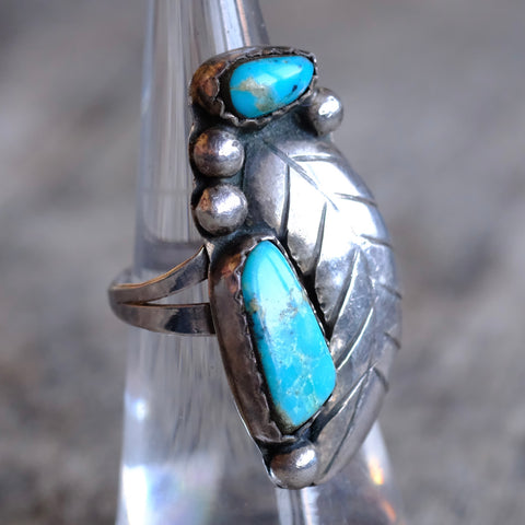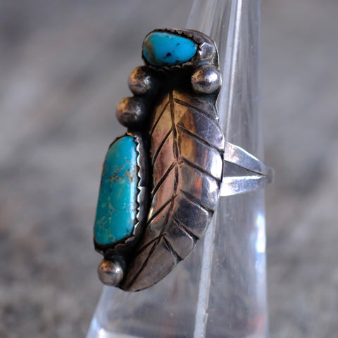 Vintage Sterling 2-Stone Turquoise Feather Ring 6.75