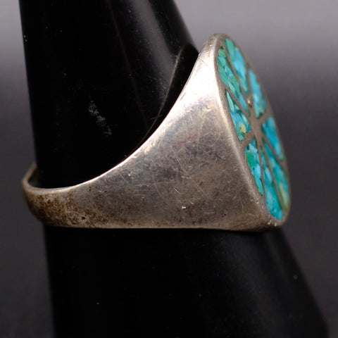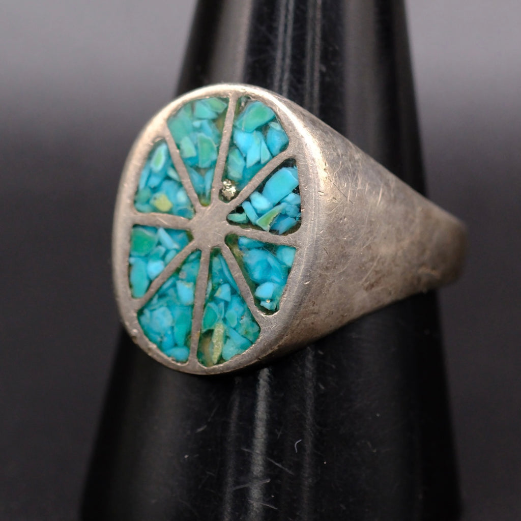 Vintage Sterling Crushed Turquoise Inlay Ring 9.75
