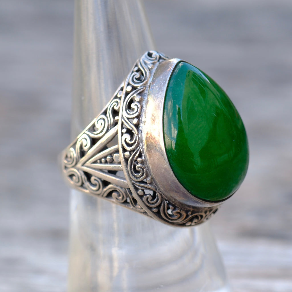 Vintage Sterling Green Carnelian Ring 7