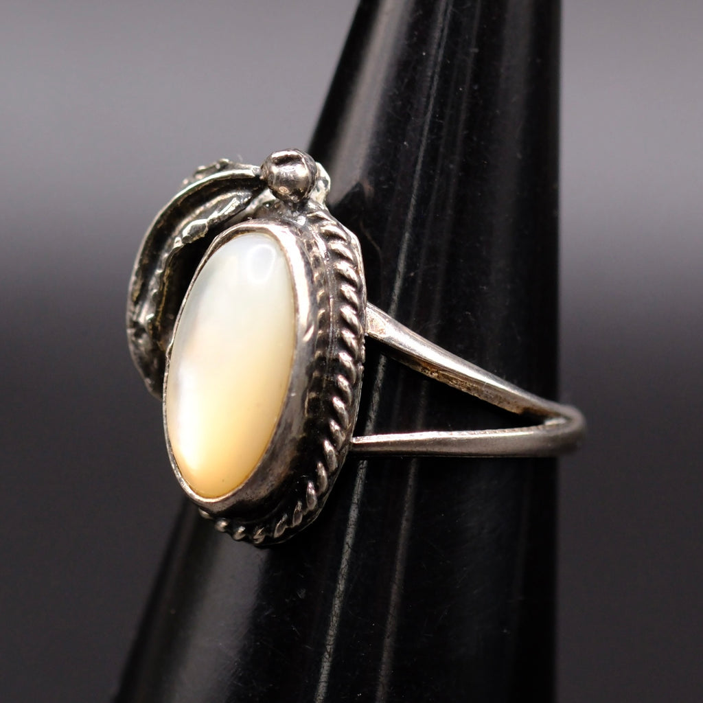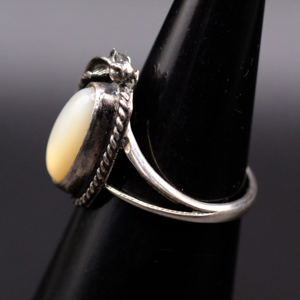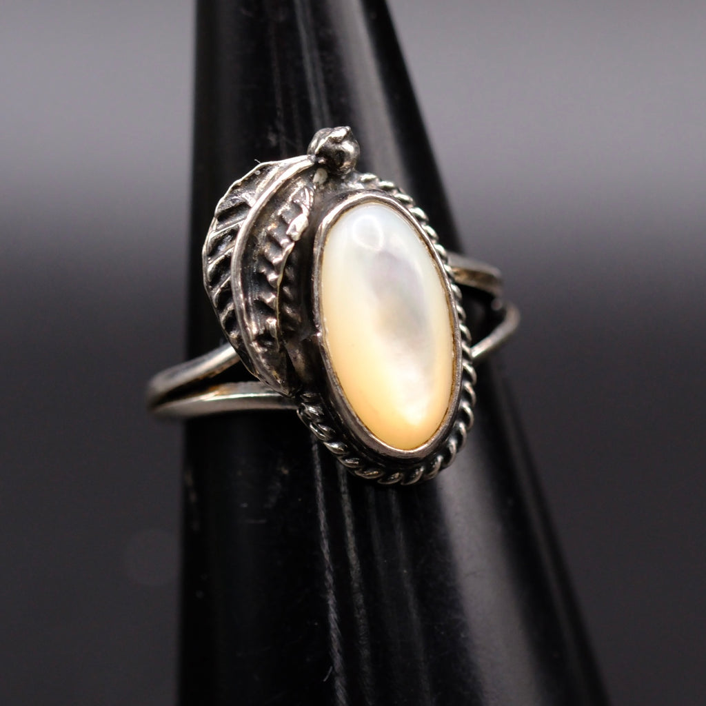 Vintage Sterling Mother Of Pearl Feather Ring 4.5